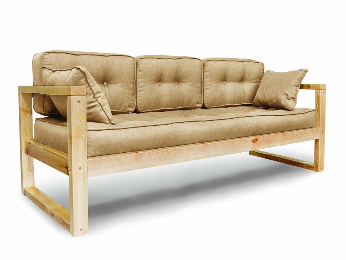 Диван изготовлен из массива сосны, выдерживает максимальную нагрузку до 140кг, рассчитан на трёх человек.