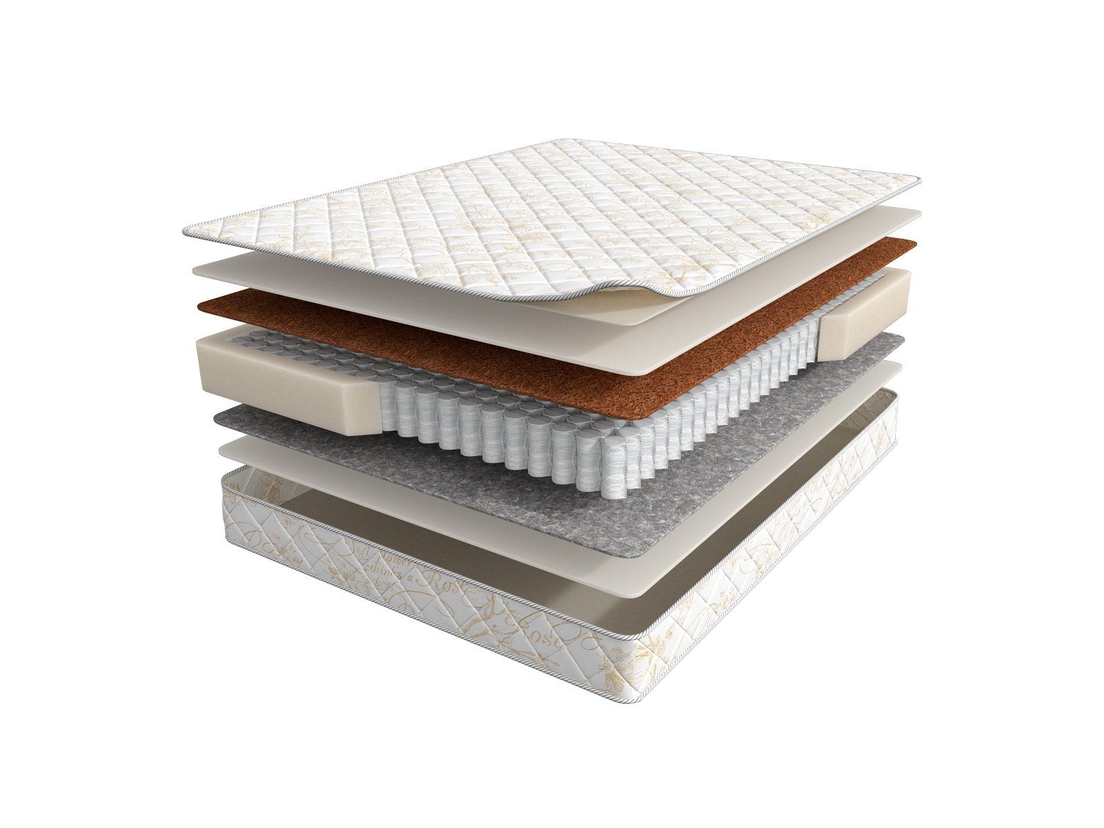 Высокоэластичная пена реализована сразу с двух сторон. Одна из поверхностей усилена при помощи кокосовой прослой. Она добавляет жёсткости и ортопедических свойств.