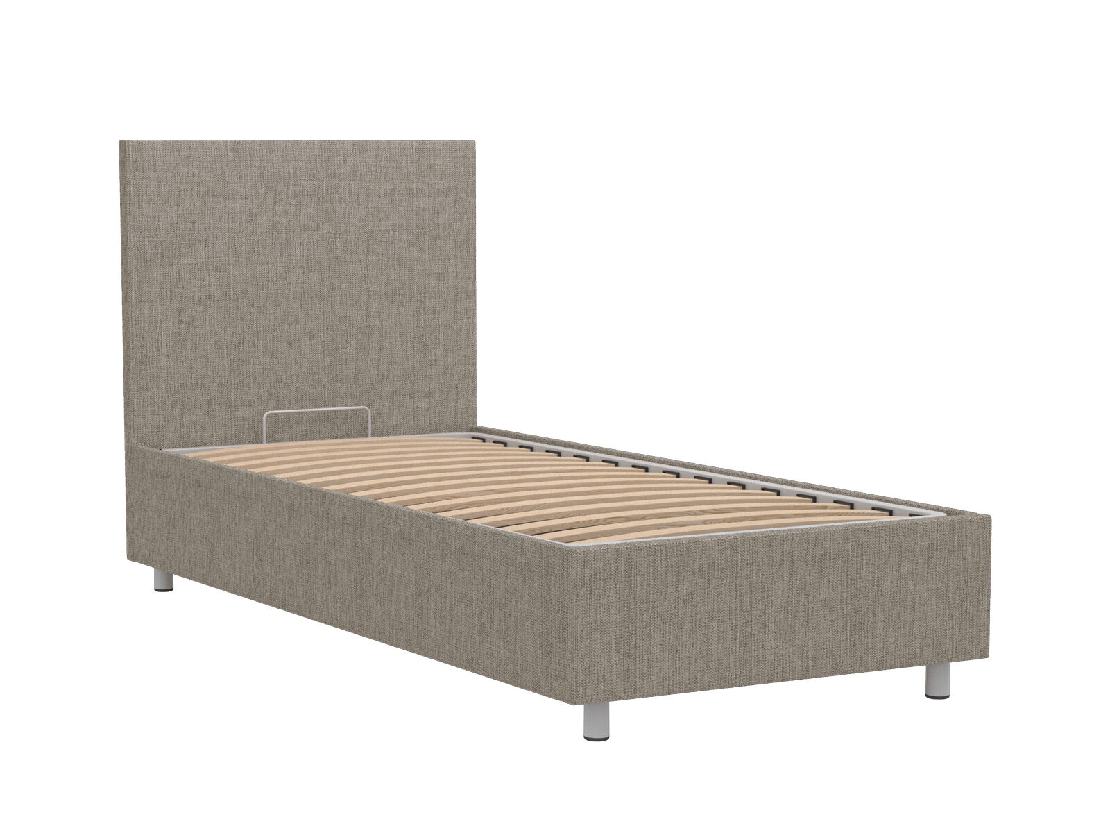 Кровать оснащена основанием с подъемным механизмом, под которым располагается бельевой ящик глубиной 16 см. Рекомендуемая высота матраса от 13 см, вес матраса до 50 кг. Чехлы на царгах несъемные. Высота/толщина царг: 28 см / 4 см (средняя), 2 см - (боковые).