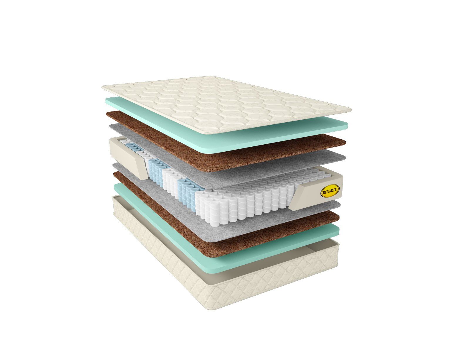 В состав изделия включены такие наполнители как койра кокоса и искусственный латекс. Эти материалы не скапливают пыль и неприятные запахи, не задерживают воду и что важно – отлично проветриваются. Их структура позволяет пропускать воздух в толщу слоёв, а как известно, микроклимат спальной зоны не менее важен для здорового сна, чем знаменитый ортопедический эффект.