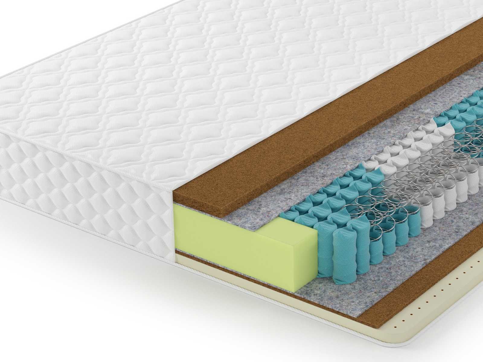 Данный матрас имеет одну сторону высокой жёсткости, за счет использования натуральной гипоаллергенной кокосовой койры. Это прочный, надежный материал с длительным сроком эксплуатации. Он обладает отличными ортопедическими свойствами, хорошо вентилируется, не впитывает запахов, не впитывает влагу, препятствует появлению постельных клещей и других микроорганизмов.