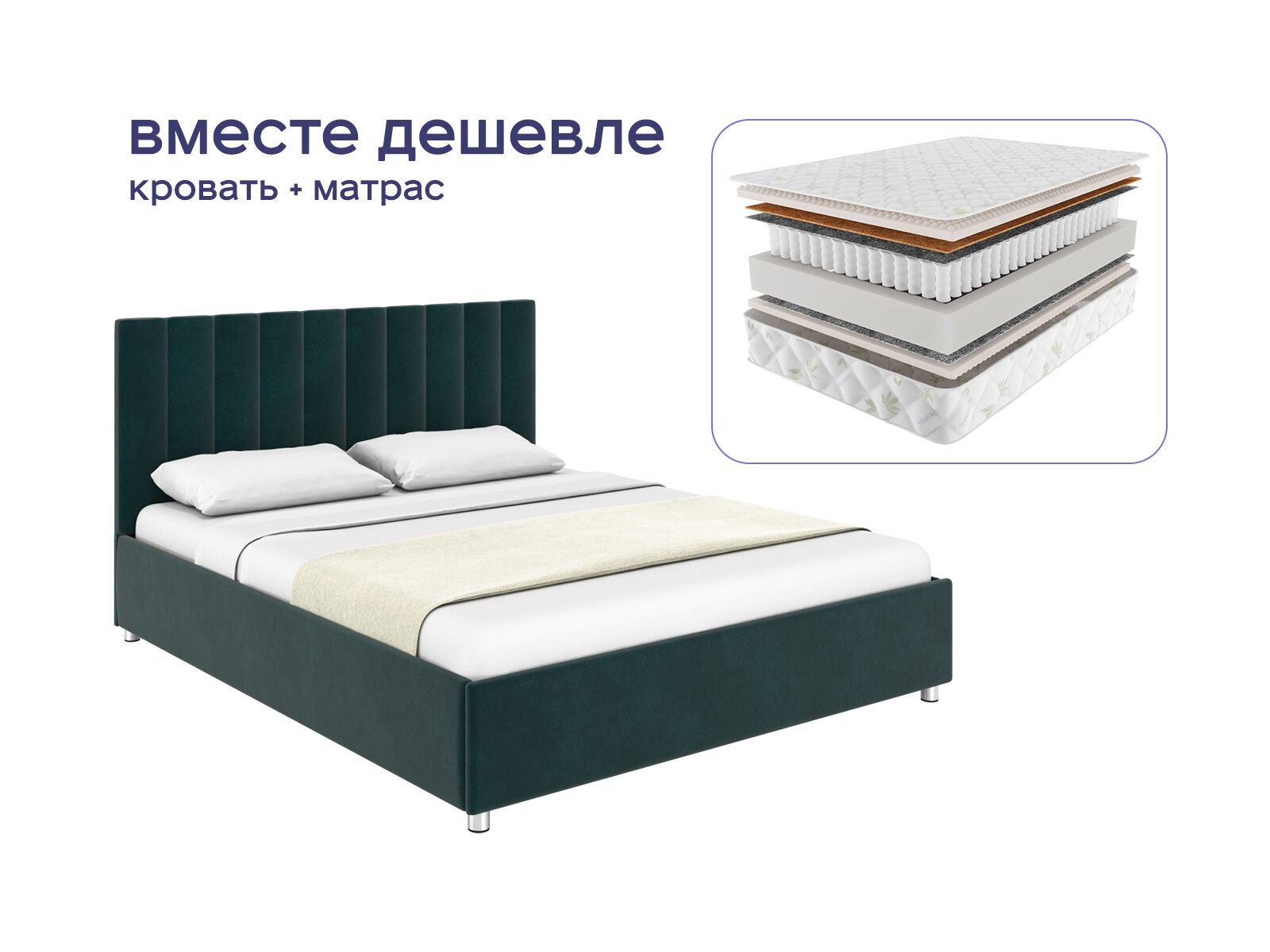 Модель отличается лаконичным изголовьем, которое украшает вертикальная параллельная стёжка. Стильная модель выделяется продуманным дизайном и украсит любой интерьер. Обивка кровати изготовлена из мягкого велюра. Мебельный короб производится из ДСП. В комплект входит ортопедическое металлическое разборное основание.