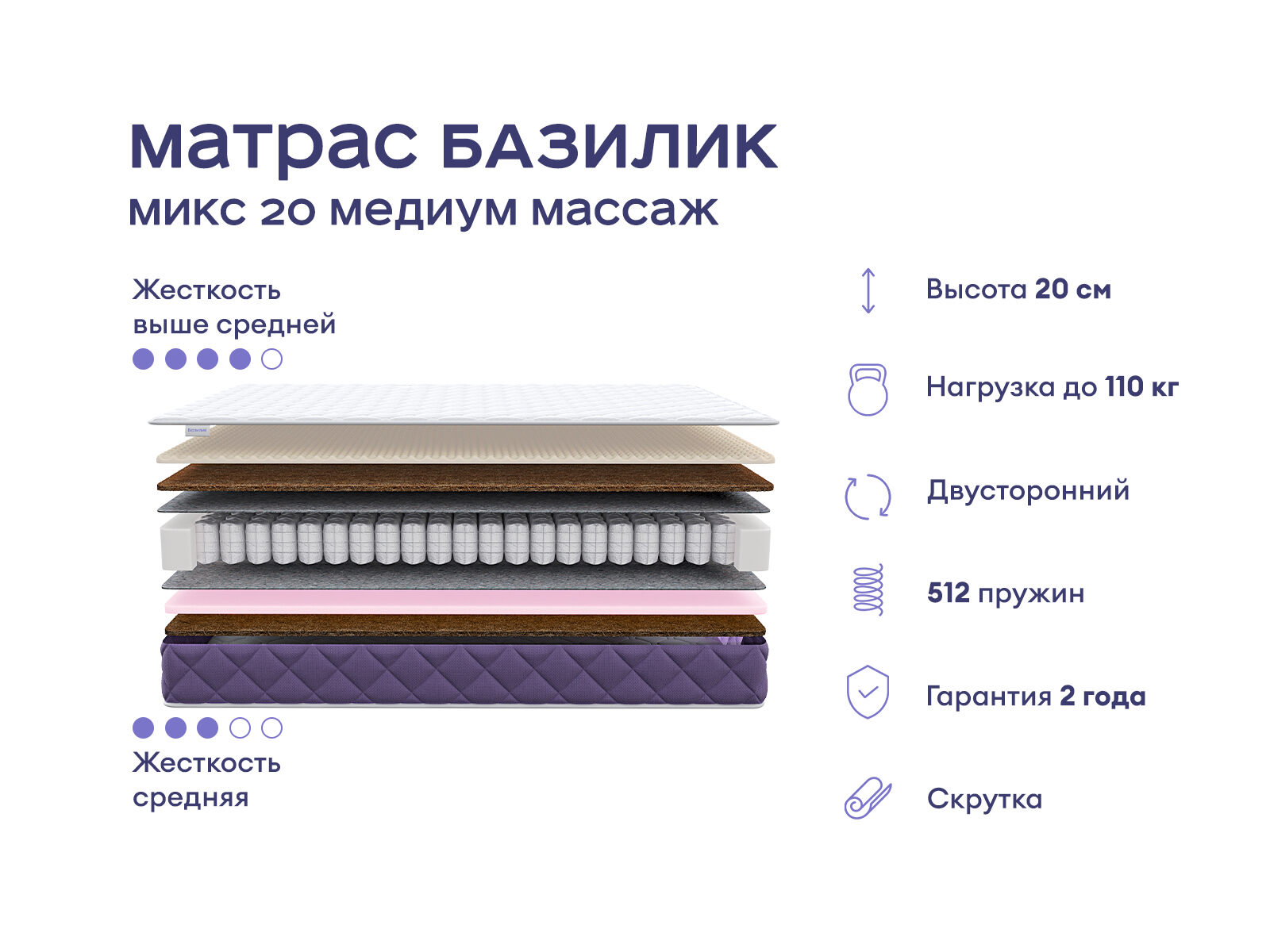 Комплект Левита + Базилик Микс 20 Медиум Массаж — это гармония элегантности и комфорта для вашего отдыха. Стильная кровать украсит любую спальню и матрас, точечно подстраивающийся под тело, дополнен массажными зонами для расслабления мышц — как в спа-салоне. При покупке комплекта вы экономите до 36% от стоимости. Идеально для тех, кто хочет совместить современный дизайн с ортопедическим эффектом, не жертвуя практичностью.