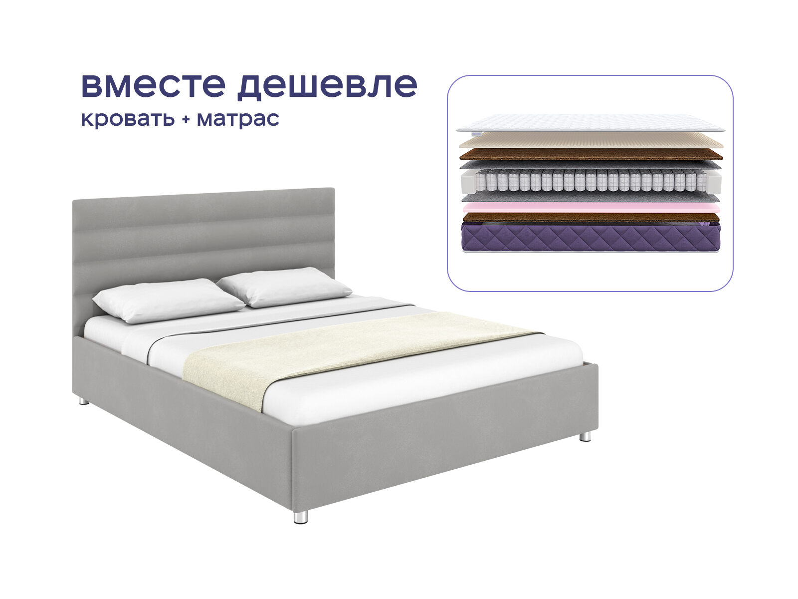 Кровать получила изящно выполненное стильное изголовье. Мягкая горизонтальная стёжка украшает модель и создаёт очень уютное пространство. Лаконичный и минималистичный дизайн позволяет универсально вписать мебель в любой современный интерьер. Кровать исполняется в обивке из велюра, которая имеет красивую мягкую фактуру и легко чистится. Сама кровать – её царги и изголовье изготавливается из прочного и надёжного ДСП. В комплект входит ортопедическое металлическое разборное основание.