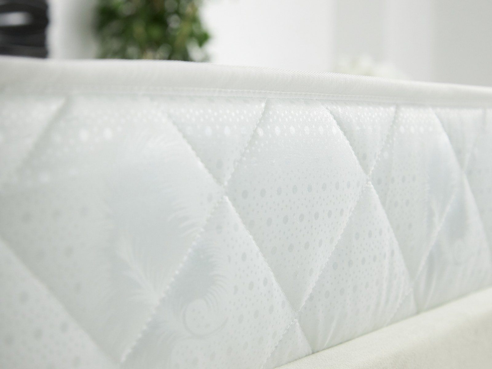 Чехол изделия выполнен из трикота. В качестве подложки выступает плотный 100 гр синтепон, благодаря которому сделана аккуратная рельефная стёжка по всей поверхности матраса.