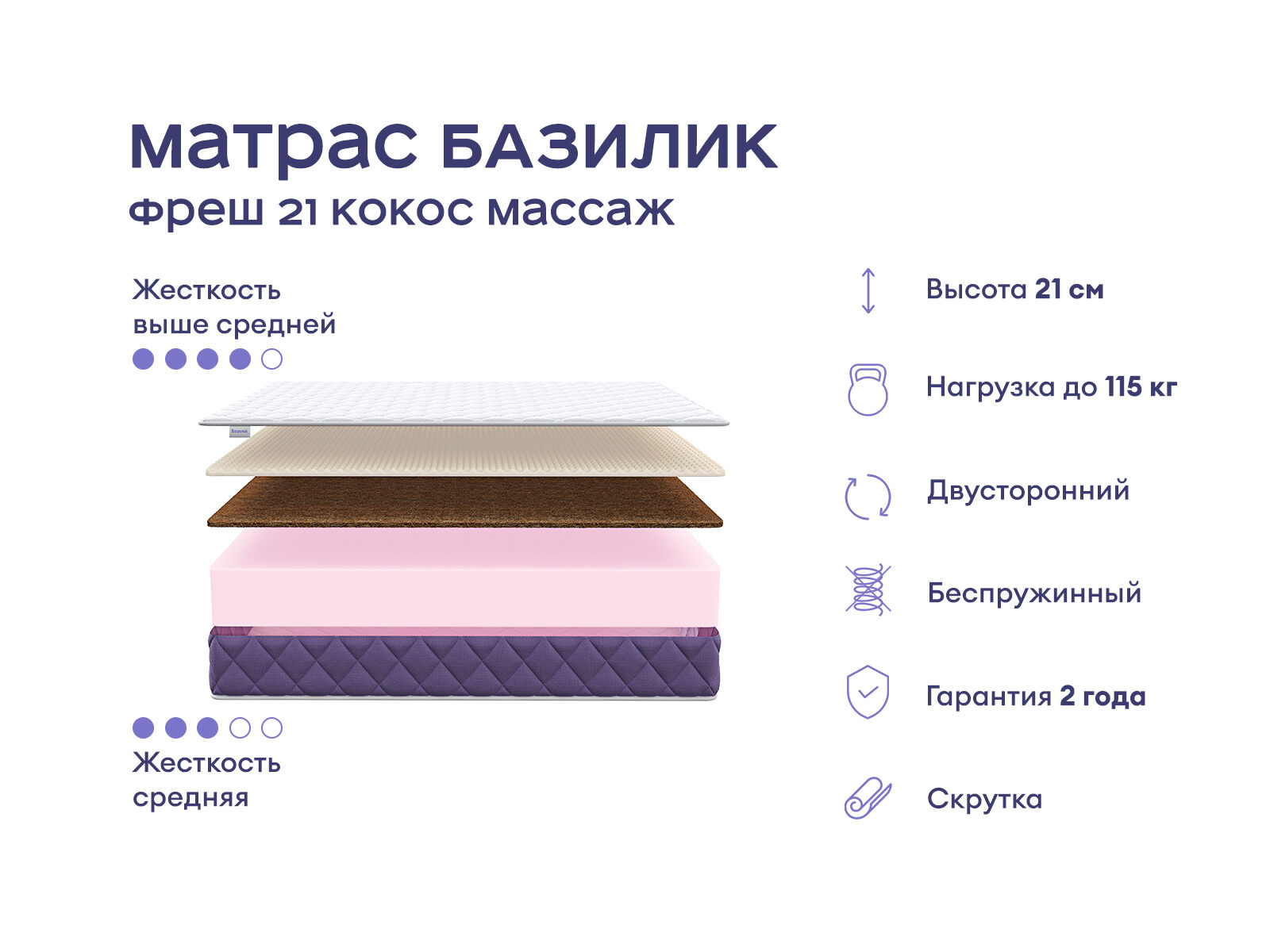 Комплект Риос + Базилик Фреш 21 Кокос Массаж — гармония лаконичного дизайна и инновационного комфорта. Кровать без изголовья, создающая эффект разгрузки пространства и простора, а также беспружинный матрас с массажным эффектом образуют идеальный тандем для тех, кто ценит современную эстетику, заботу о здоровье и выгодные решения. Сэкономьте до 36% от стоимости приобретая товары комплектом.