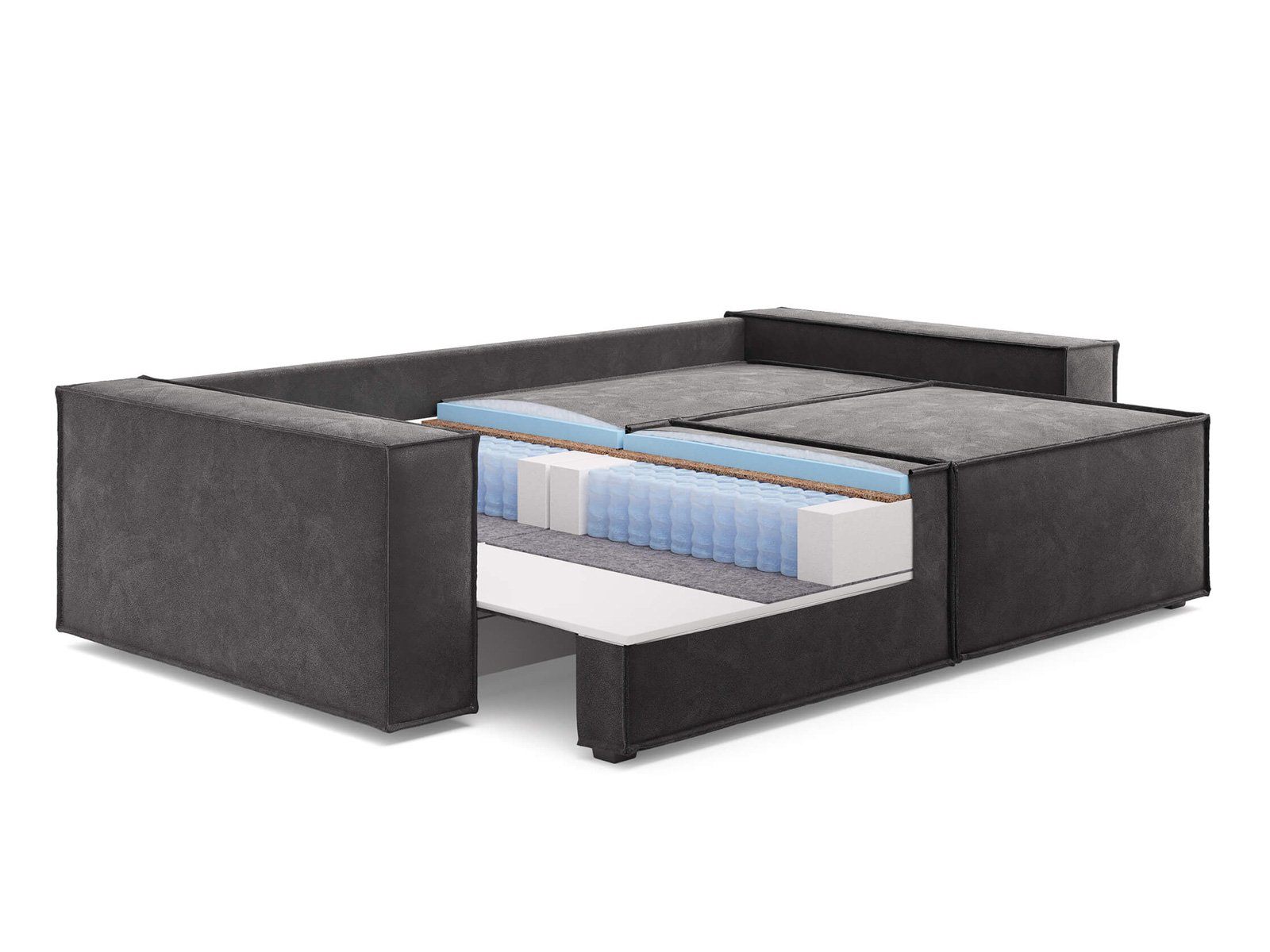 Диван Loft с механизмом трансформации «Пантограф». В основе дивана полноценный ортопедический матрас на независимом пружинном блоке, усиленном слоем натуральной латексированной кокосовой койры. Комфортная глубина и высота сиденья обеспечит ежедневный комфорт. Декоративный кант подчеркивает прямые и геометричные формы, придает строгость. Задняя спинка защищает от прикосновения со стеной во сне, а стену – от возможных повреждений и загрязнений. В основе мягких подушек – микс наполнителей: поролоновая крошка защищает от деформации, а синтетическое волокно добавляет мягкость и упругость – для бережной поддержки спины. Подушки убираются во вместительный бельевой ящик с вентиляционным отверстием в разложенном состоянии дивана.