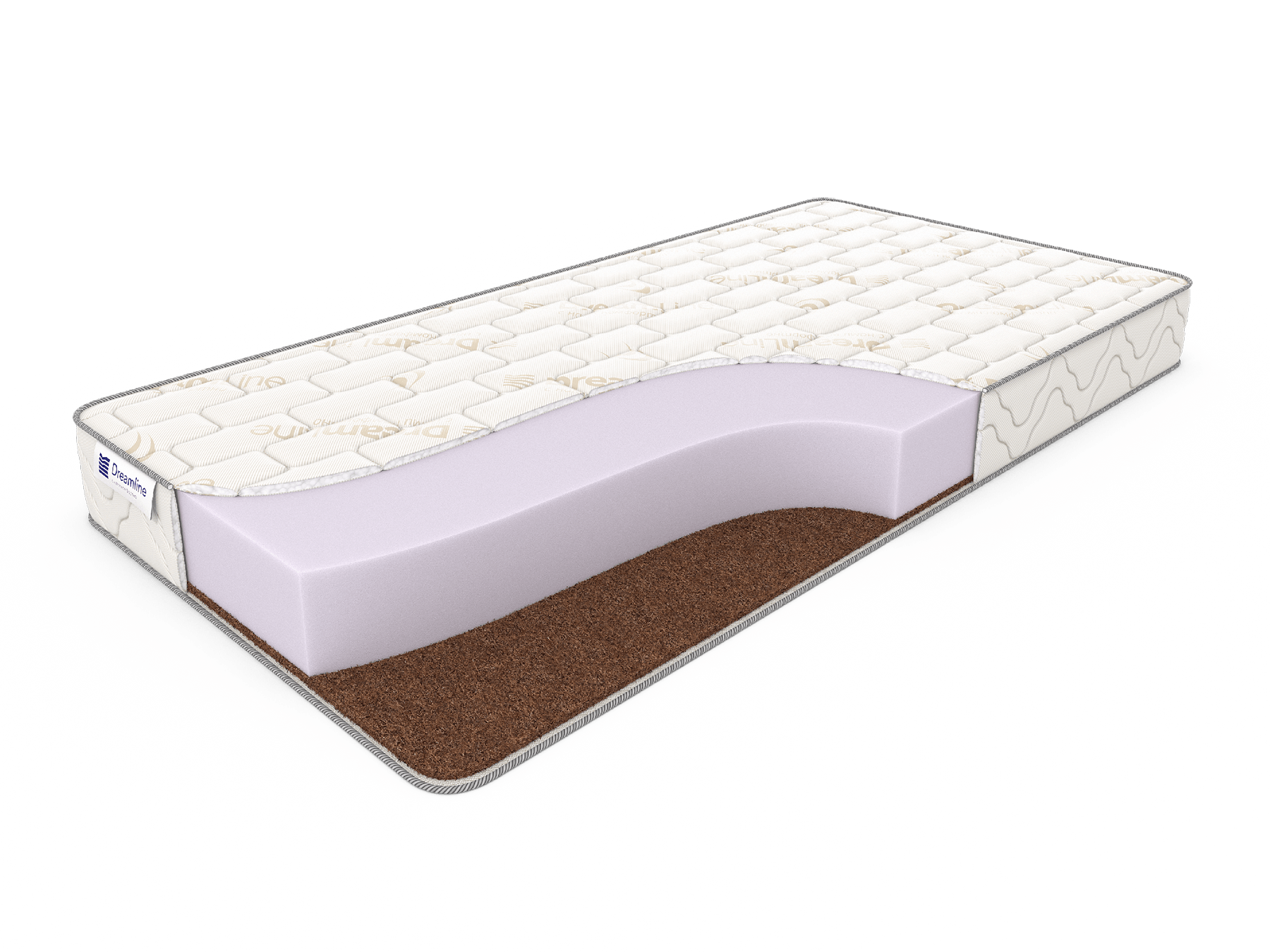 Беспружинный матрас Dreamroll Hard имеет разную жесткость сторон и базируется на плите из искусственного латекса. Он подстраивается под анатомические особенности человека и гарантирует комфортный сон. Универсальная модель подходит как детям, так и пожилым людям. Максимально разрешенная нагрузка до 100 кг на спальное место. С одной из сторон проложен наполнитель из кокоса. Натуральный слой придает поверхности твердость и уменьшает дискомфорт в спине. Искусственный латекс оказывает деликатную поддержку и легко восстанавливает форму после давления. Материалы не накапливают пыль, поэтому модель рекомендована людям, которые страдают аллергией. Матрас скручен в рулон и поставляется в вакуумной упаковке.