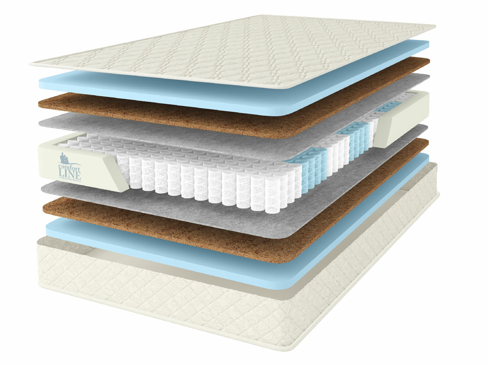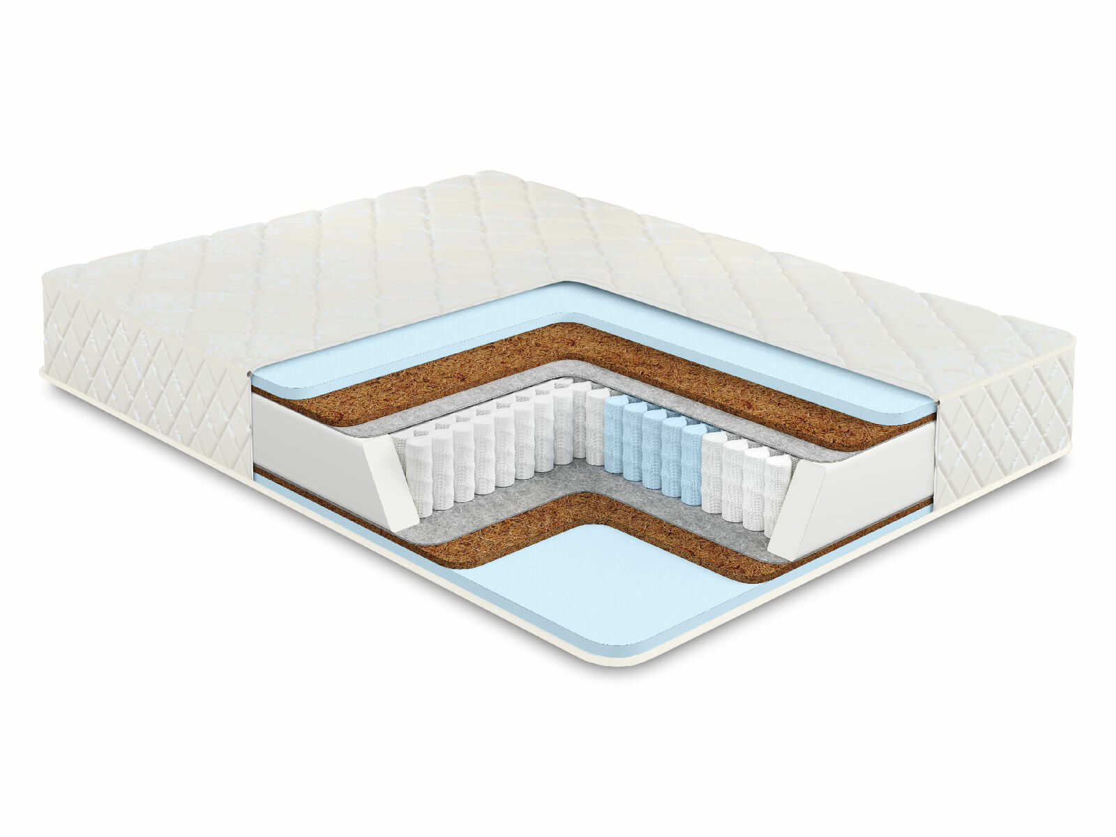 Ортопедическая пена Ecofoam и койра кокоса выступают в качестве наполнителей с двух сторон изделия. Материалы обладают собственными неповторимыми свойствами, которые и передают матрасу. Пена даёт умеренную упругую мягкость и поддержку для корпуса спящего, а койра, благодаря своей плотности и жёсткости, обеспечивает удержание позвоночника в анатомически правильном положении. Оба наполнителя нетоксичны, безопасны и гигиеничны для ежедневного применения. Они разрешены в производстве не только взрослых принадлежностей, но и товаров для детей.