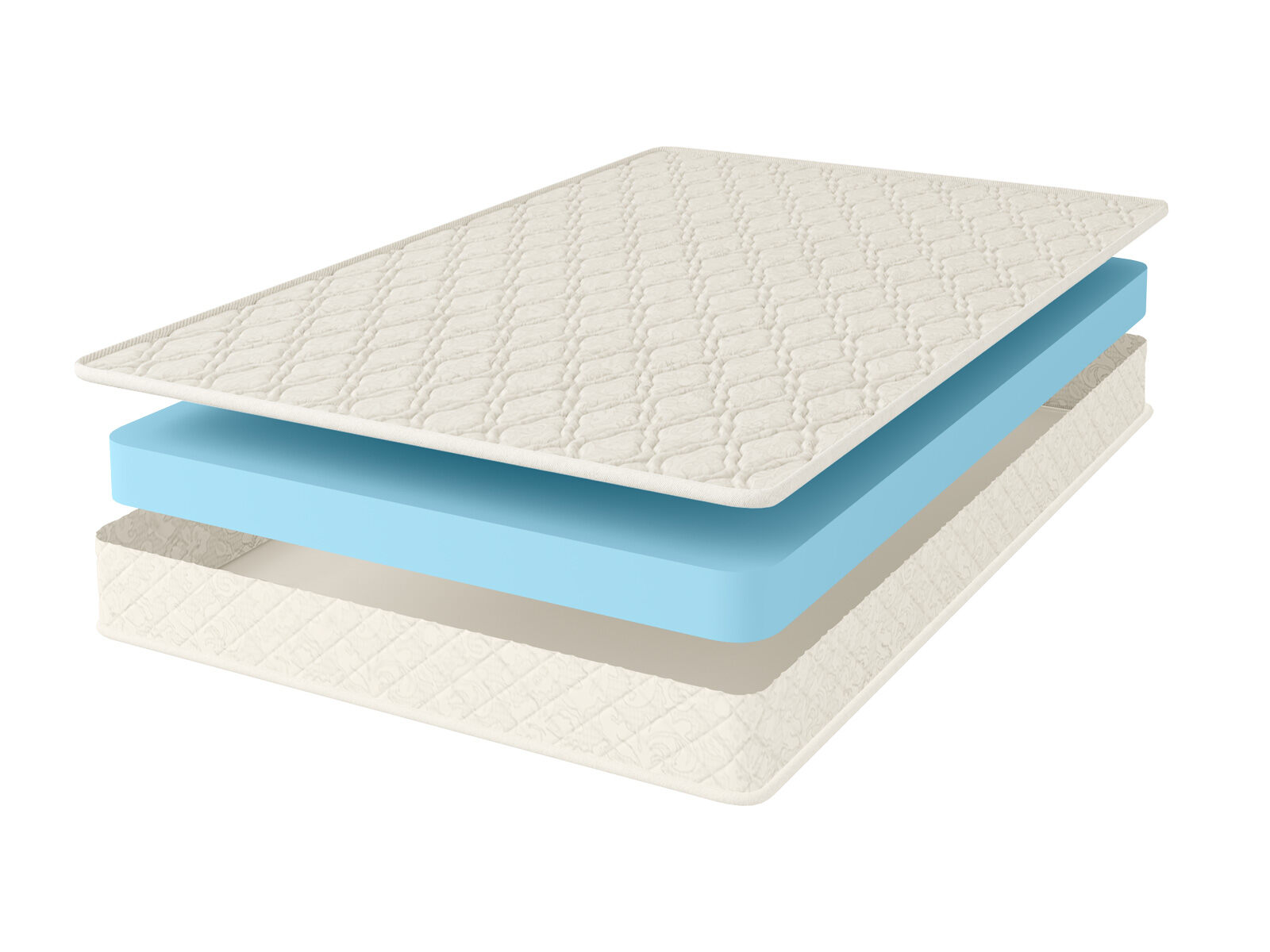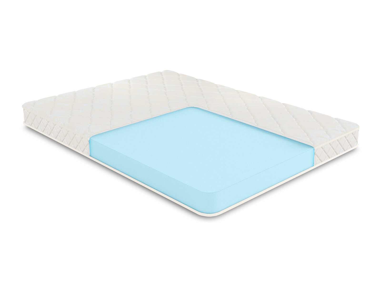 Обивкой изделия выступает красивая и практичная ткань – хлопковый жаккард. Она отлично переносит нагрузки и постоянные трения, не теряя при этом свой эффектный и нарядный внешний вид. Натуральные волокна внутри полотна способствуют циркуляции воздуха, а это значит, что вам не будет жарко спать на таком матрасе.