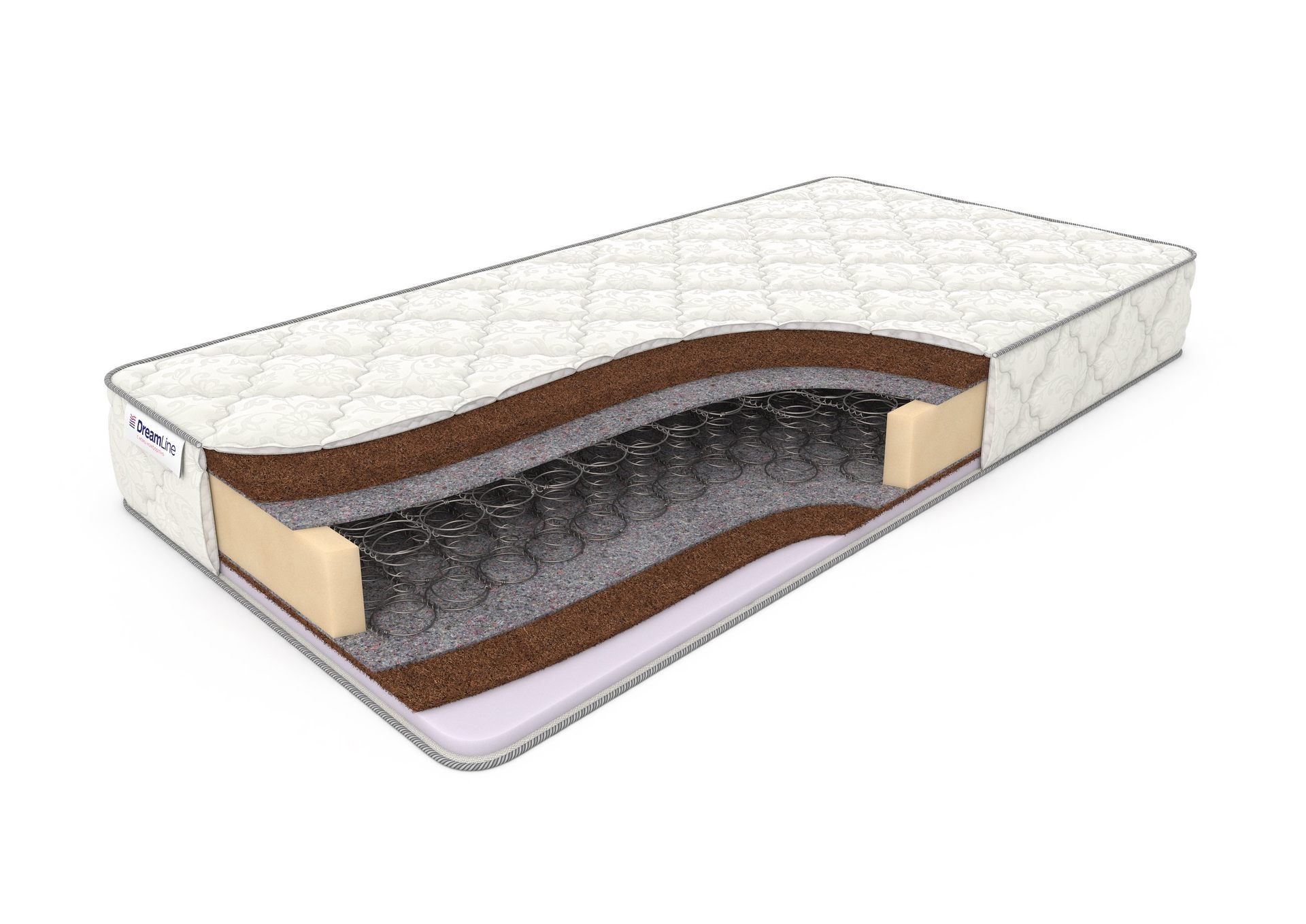 Матрас Kombi 1 BS высотой 21 см имеет две степени жесткости и состоит из смешанных материалов. С одной из сторон расположен трехсантиметровый слой латексированной кокосовой койры, которая придает высокую жесткость, но в то же время обеспечивает комфортный сон. Вторая сторона - умеренной жесткости, она состоит из сантиметрового слоя койры и двух сантиметров пенопоулиретана - эластичной пены, стойкой к деформациям и нагрузкам. В середине находится блок зависимых пружин Bonnel, защищенный с обеих сторон плотным термовойлоком. Матрас Kombi 1 BS подходит людям весом до 110 кг. Чехол модели, в который по заказу можно бесплатно вшить смотровую молнию, выполнен из хлопкового жаккарда, простеганного на антиаллергенном холконе 200 гр./м2.