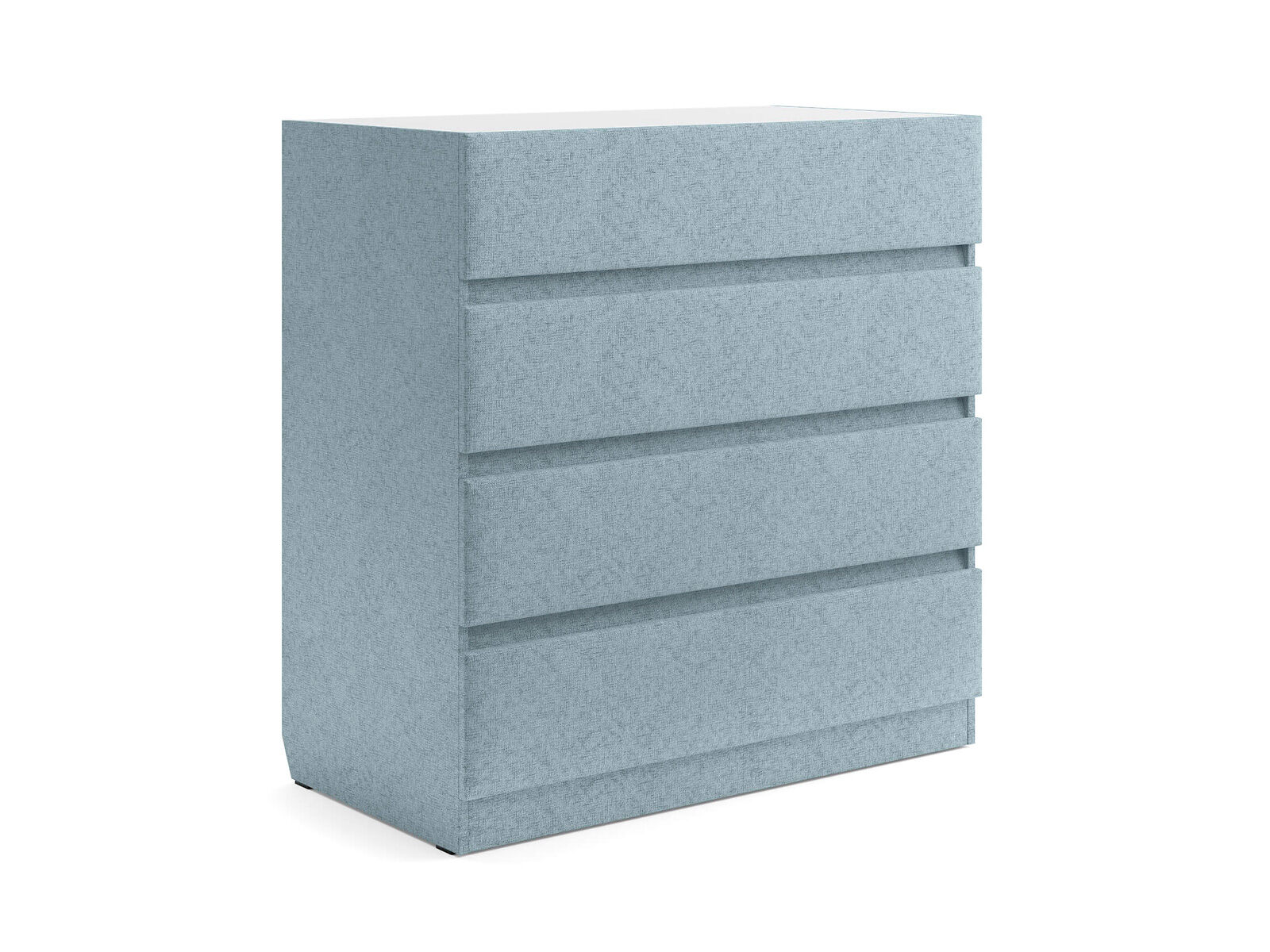 Комод Omega выполнен в современном стиле. Прямые линии, отсутствие ручек и просвета от пола, делают его универсальным, позволяя комплектовать комод с тумбами Omega и кроватями, имеющими лаконичное изголовье. Четыре выдвижных ящика с направляющими скрытого монтажа оснащены доводчиками. Задняя стенка выполнена из ДСП и обита спанбондом, это делает комод устойчивым и прочным. Комод Omega имеет скос под плинтус, это позволяет устанавливать его вплотную к стене. Можно укомплектовать стеклянной столешницей. Широкий выбор фактур и цветов исполнения.