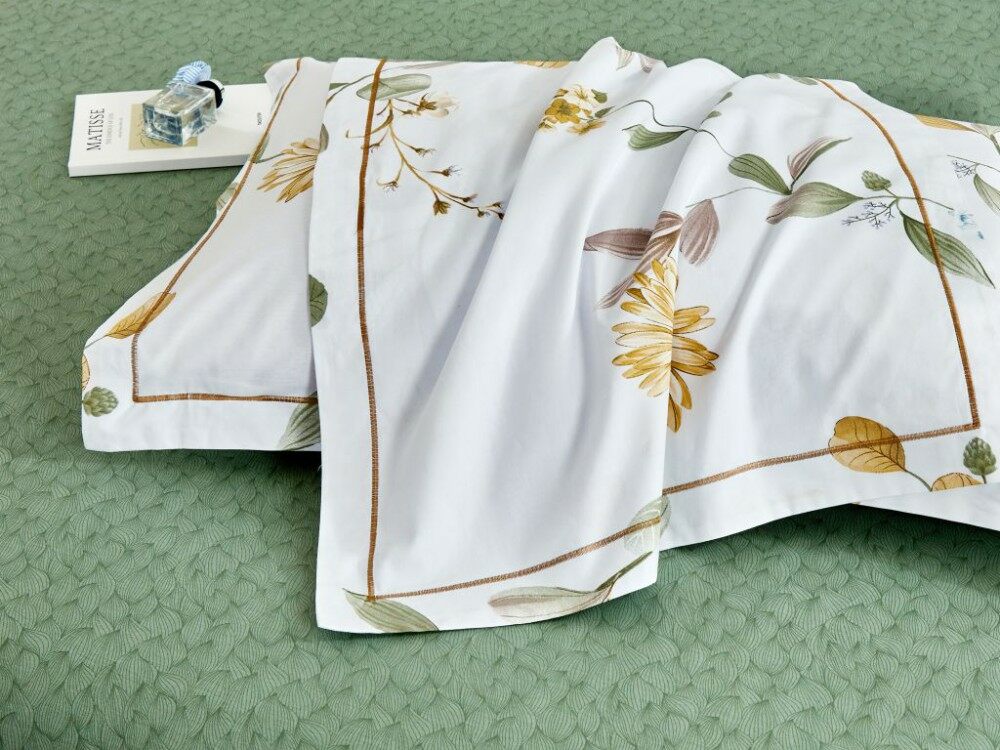 Комплект из одеяла ("одеяло-комфортер" - используется вместо пододеяльника), простыни и наволочек из печатного сатина.