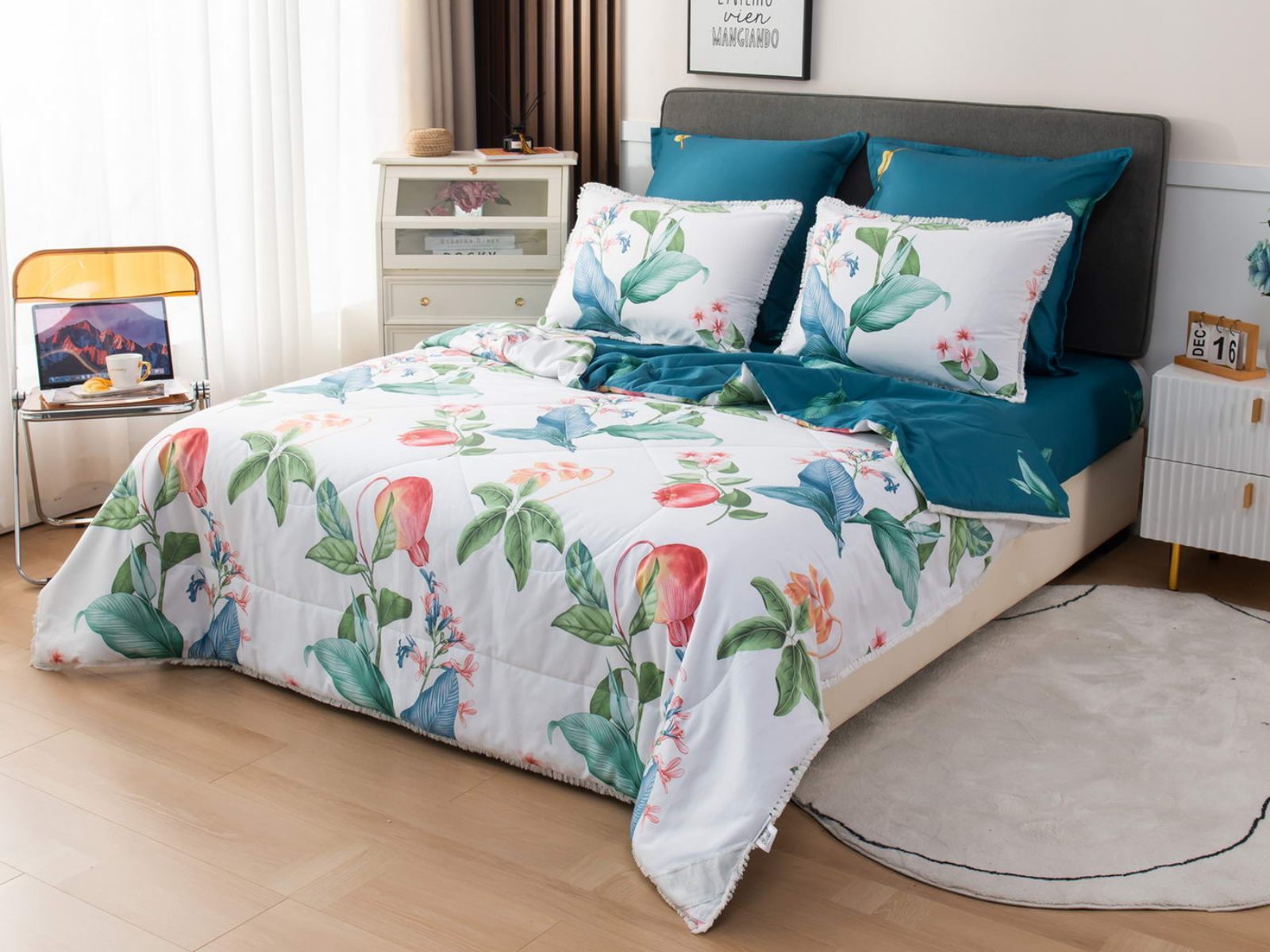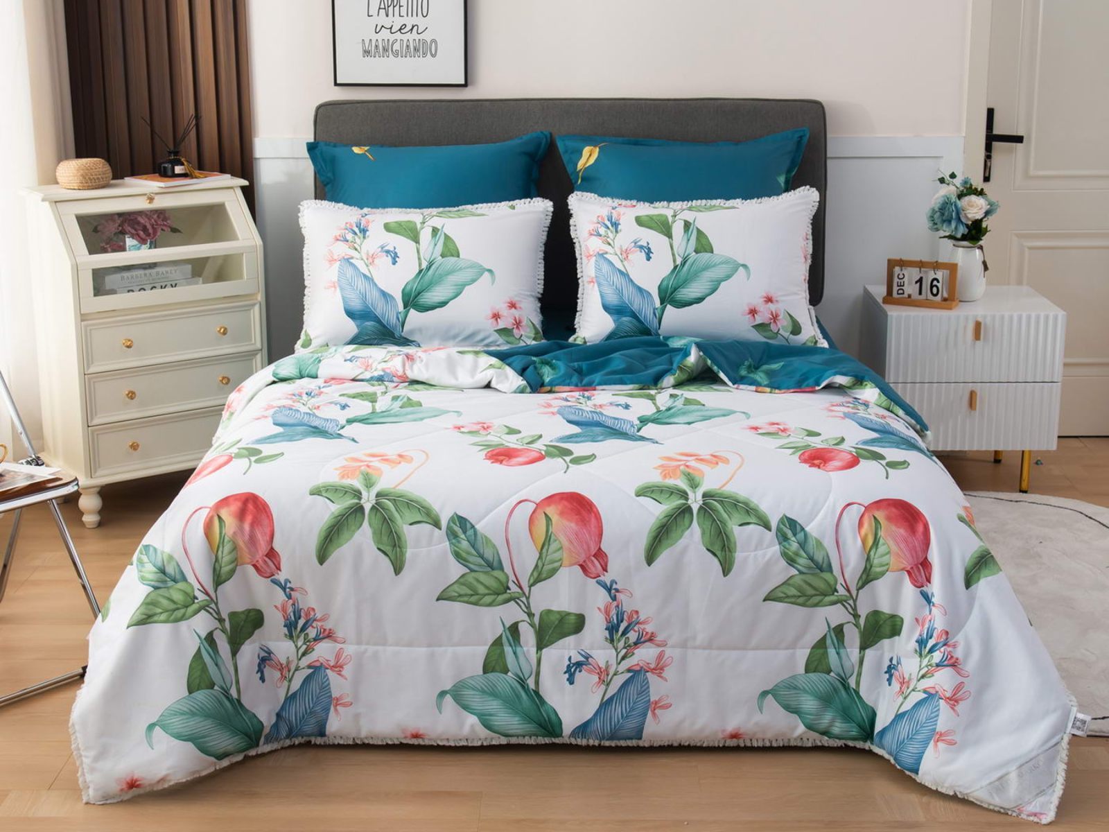 Набор с одеялом прослужит вам достаточно долго без потери своего качества, а рисунок не потускнеет даже после стирок. Комплект легко стирается в обычной машине и также легко гладится.