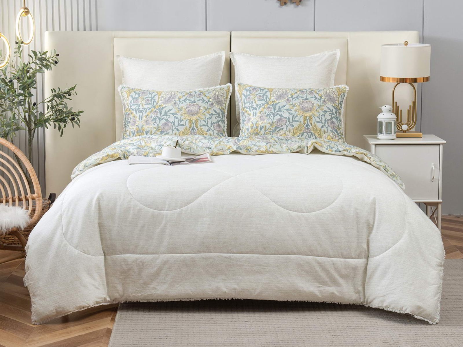 В комплекты комфортеров с одеялом Бернадетт входят наволочки, простыня и легкое всесезонное одеяло. Оцените это современное и очень удобное решение, которое идеально подходит тем, кто не любит возиться с пододеяльниками.