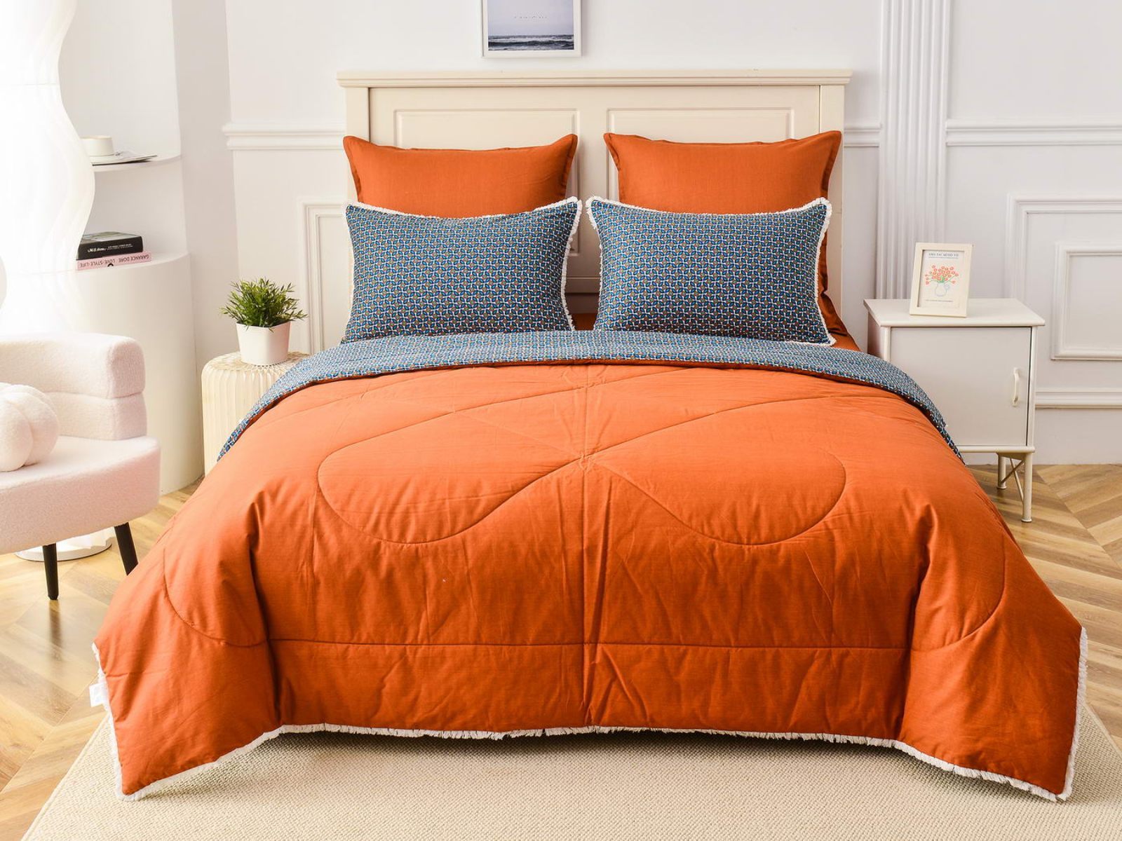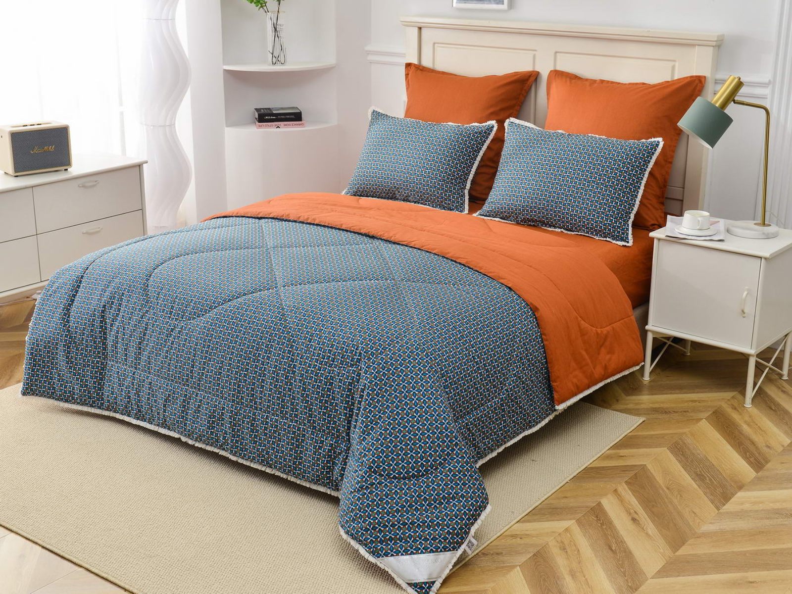 В комплекты комфортеров с одеялом Бернадетт входят наволочки, простыня и легкое всесезонное одеяло. Оцените это современное и очень удобное решение, которое идеально подходит тем, кто не любит возиться с пододеяльниками.