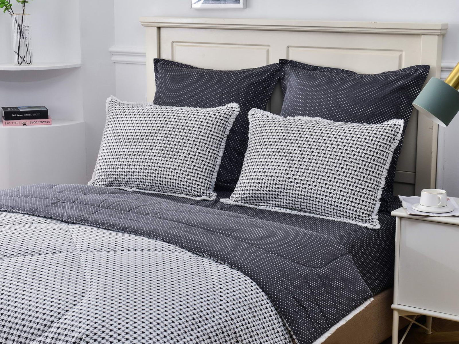 В комплекты комфортеров с одеялом Бернадетт входят наволочки, простыня и легкое всесезонное одеяло. Оцените это современное и очень удобное решение, которое идеально подходит тем, кто не любит возиться с пододеяльниками.