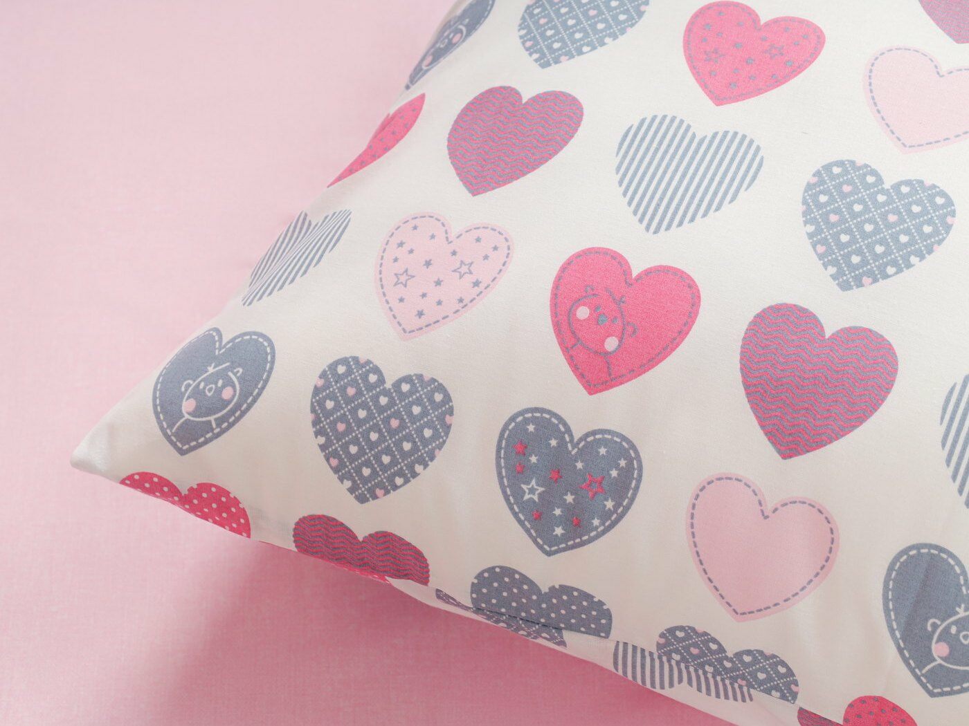 Наволочка – полностью из принтованной ткани, на запахе. Запах широкий, расположен сбоку по стороне 50 см.