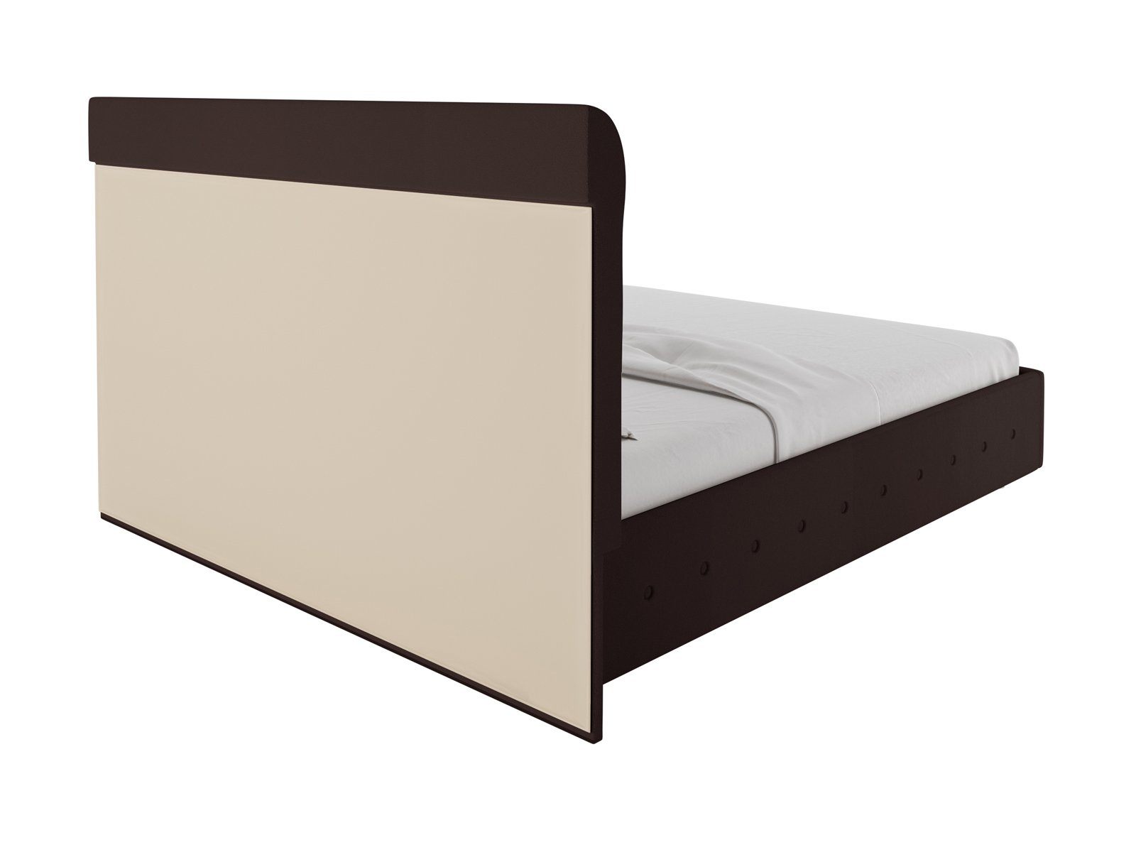 Для обивки кровати используется экокожа, которая легко чистится и максимально напоминает натуральную кожу. При стандартной комплектации обратная сторона изголовья выполняется из технического материала. Однако по желанию его можно заменить на основную обивку кровати.