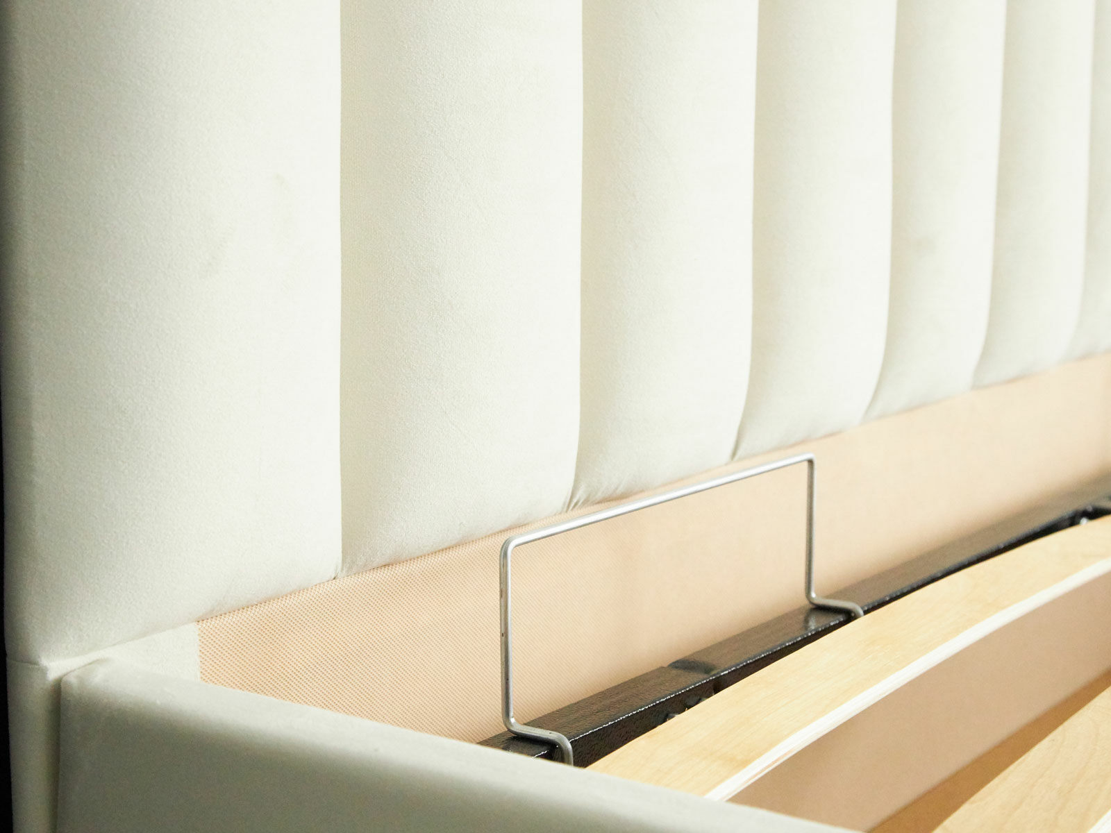 Обратная сторона изголовья в стандартной комплектации выполнена из технического материала, при необходимости его можно заменить на мебельную ткань, соответствующую основной обивке. Стоимость данной опции необходимо уточнять у нашего специалиста-консультанта.