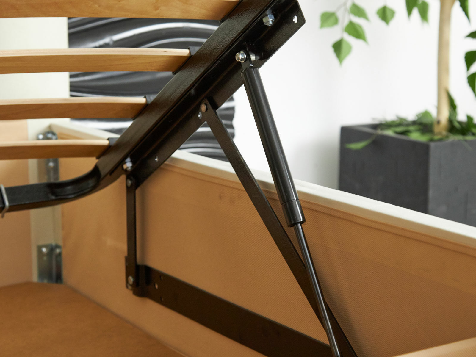 В комплектации с подъемным механизмом кровать имеет вместительный бельевой короб с двумя отделениями.