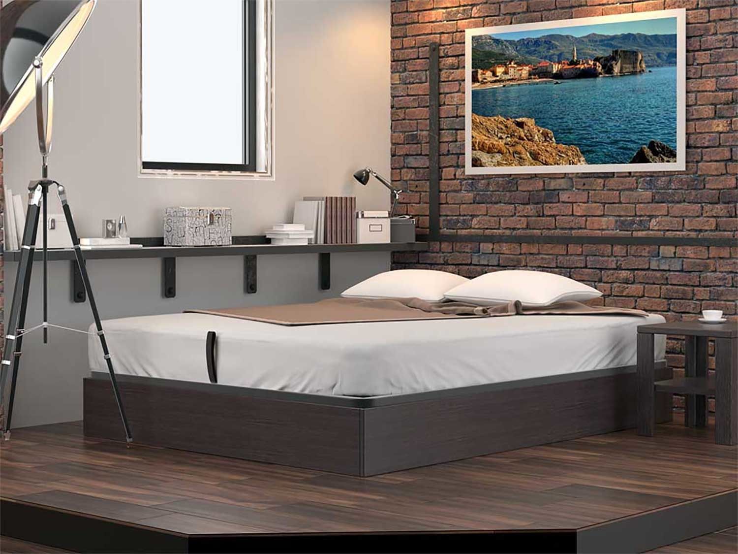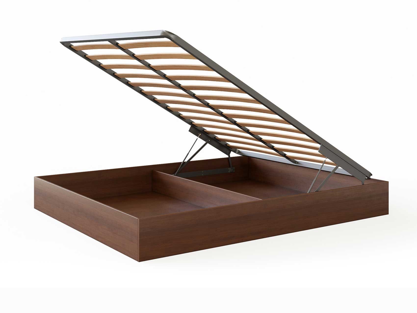 Кровать Куб представляет собой металлическое основание с ламелями из березового шпона и ящик для белья, которые соединены специальным механизмом подъема, который рассчитан под вес матраса. Стандартно предусмотрено основание Dream. Требуется сборка.