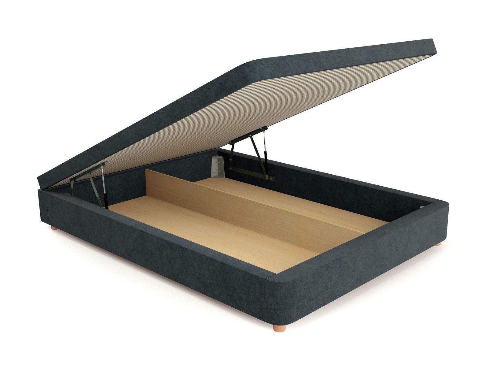 Отличительная черта кроватного бокса Flip Box в его уникальном подъемном механизме. Он не скрипит, очень прочный, легко поднимается и опускается с помощью доводчиков. Удобный принцип работы без дополнительных усилий или нагрузок. Благодаря нашему уникальному подъемному механизму, бокс встает не только в вертикальное, но и в горизонтальное положение, что обеспечивает беспрепятственный доступ к пространству под основанием кровати, открывая просторную и высокую нишу для хранения вещей. В отсеке под кроватью без труда разместятся подушки, одеяла, пледы и другие постельные принадлежности. Такая кровать по объему хранения прекрасно заменит шкаф или комод и избавит от загромождения комнаты лишней мебелью. Бокс легко открывается, оборудован ручкой или ремнем для поднятия основания с матрасом. Существенная экономия свободной площади в спальной комнате и квартире в целом.