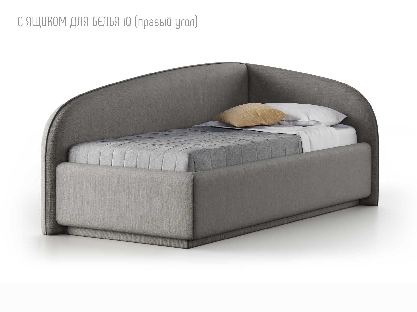 Кровать укомплектована IQ с подъемным механизмом и ящиком для белья без дна (дополнительная платная опция - дно к ящику IQ из HDF (ХДФ). Каркас кровати на цоколе, декоративный чехол на цоколе съёмный. Глубина ящика для белья - 30 см, без ограничения нагрузки на ящик.