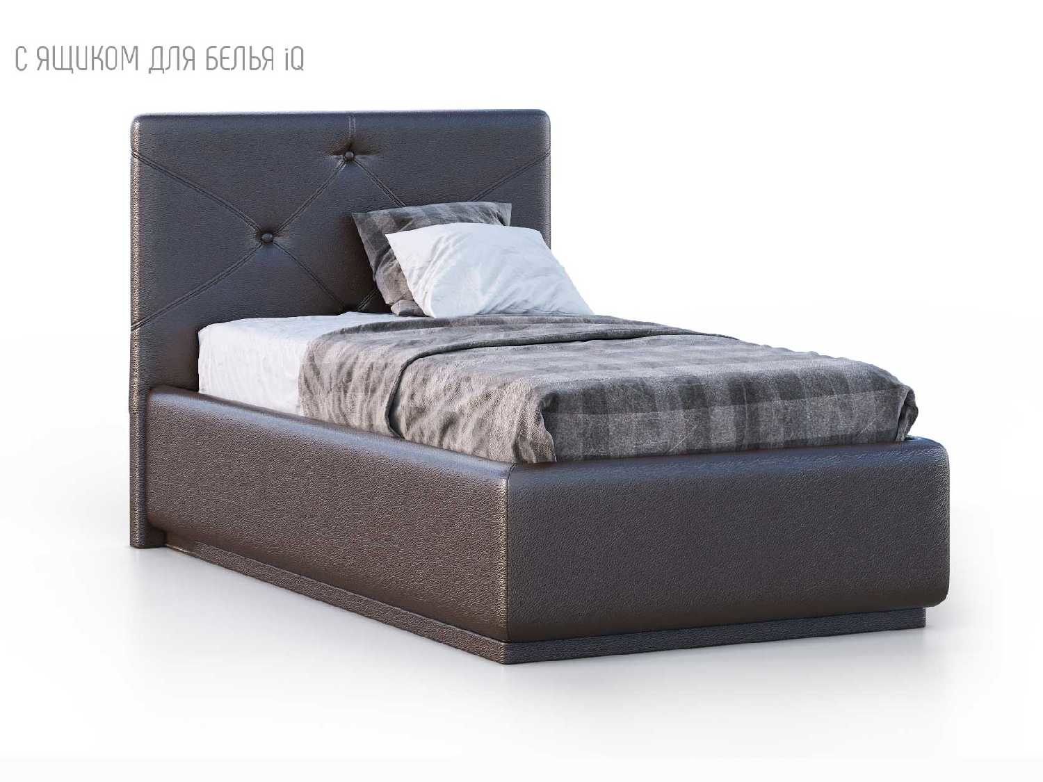 Кровать укомплектована IQ с подъемным механизмом и ящиком для белья без дна (дополнительная платная опция - дно к ящику IQ из HDF (ХДФ). Каркас кровати на цоколе, декоративный чехол на цоколе съёмный. Глубина ящика для белья - 30 см, без ограничения нагрузки на ящик.