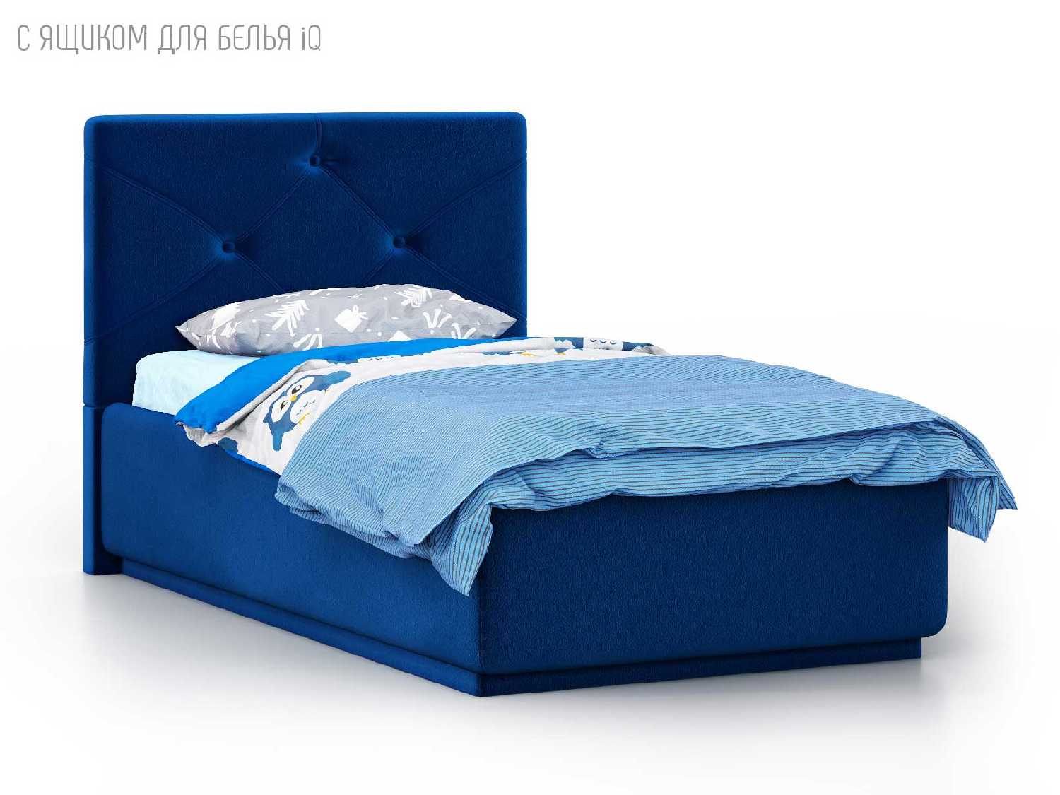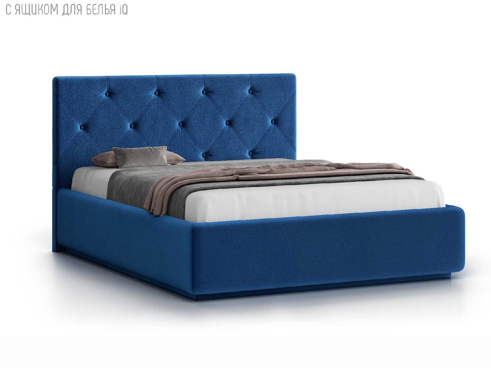 Кровать укомплектована IQ с подъемным механизмом и ящиком для белья без дна (дополнительная платная опция - дно к ящику IQ из HDF (ХДФ). Каркас кровати на цоколе, декоративный чехол на цоколе съёмный. Глубина ящика для белья - 30 см, без ограничения нагрузки на ящик.