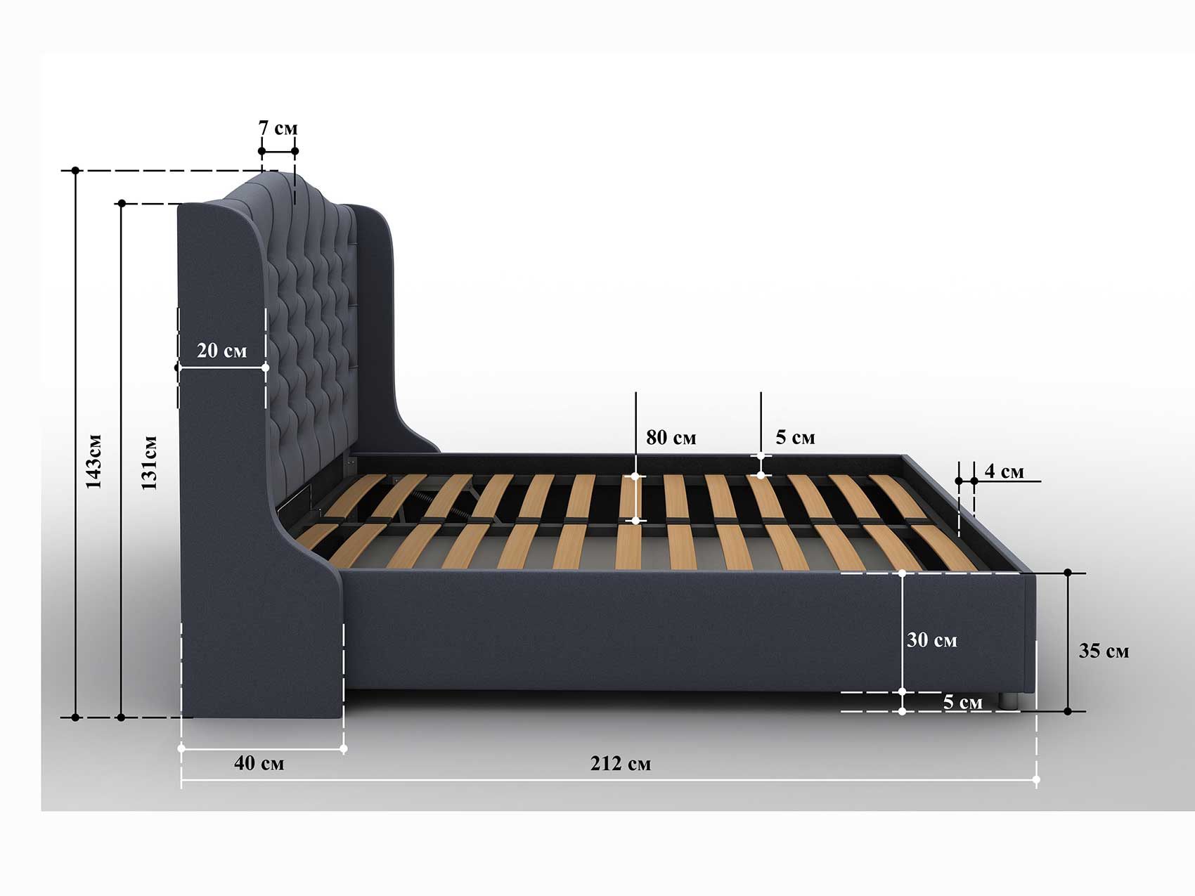 Модель Premier 5 отличает красивая фигурная спинка с каретной стяжкой. Изголовье мебели получило сложную фигурную форму и декорирование пуговицами в тон обивки. Такая кровать станет центром притяжения в любой спальне. Мягкая реализация обивки позволяет по-настоящему ощутить удобство и комфорт.