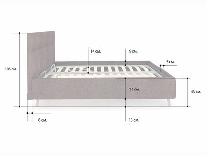 Двуспальная кровать с мягким изголовьем подойдет для современных интерьеров спален, а благодаря высоким деревянным ножкам впишется в стиль ретро, скандинавский или минимализм.