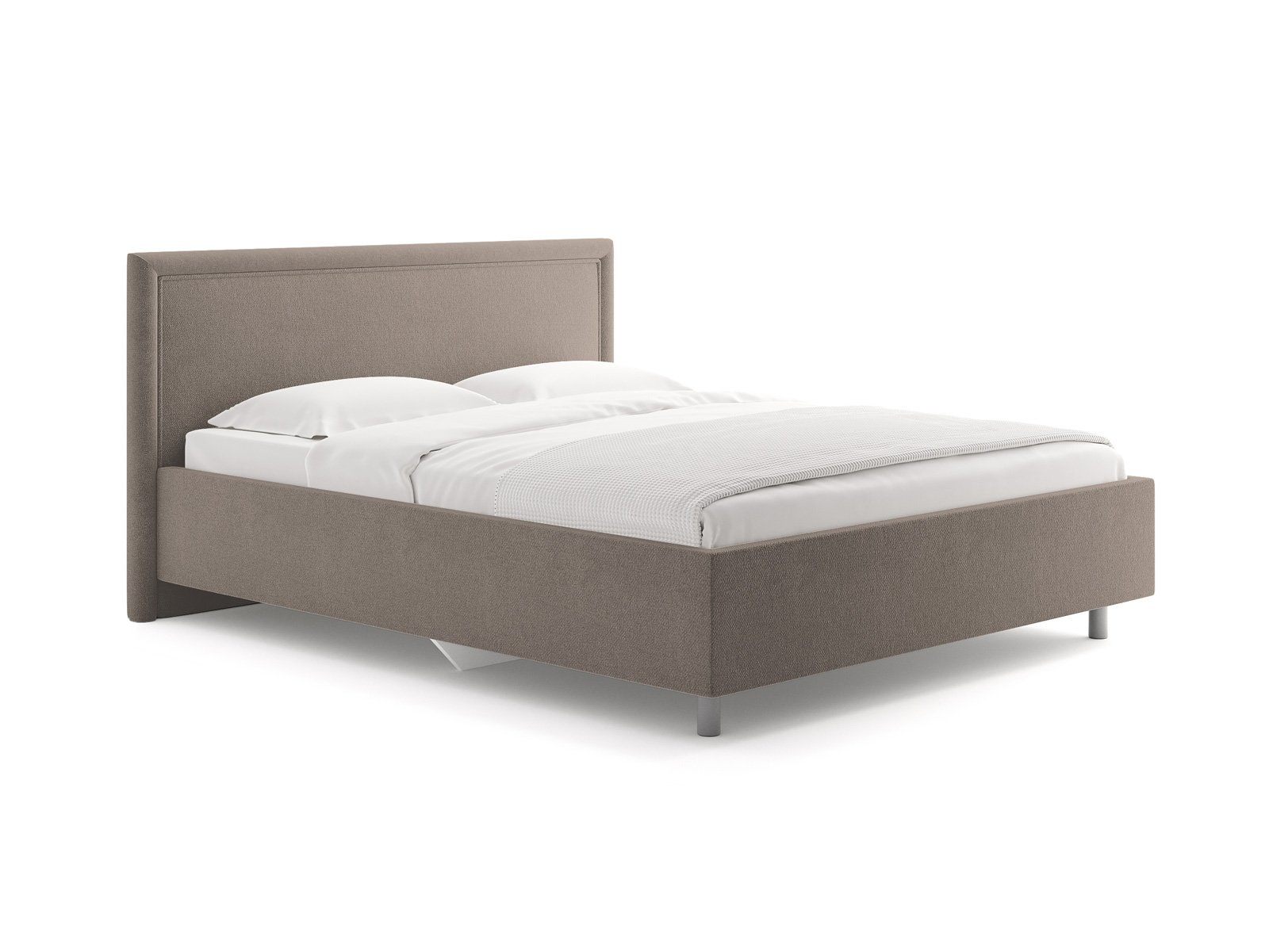 Элегантная интерьерная кровать с мягким изголовьем. Модель изготовлена из ДСП. Обратная сторона изголовья обита спандбондом, но её можно выполнить из основного обивочного материала.