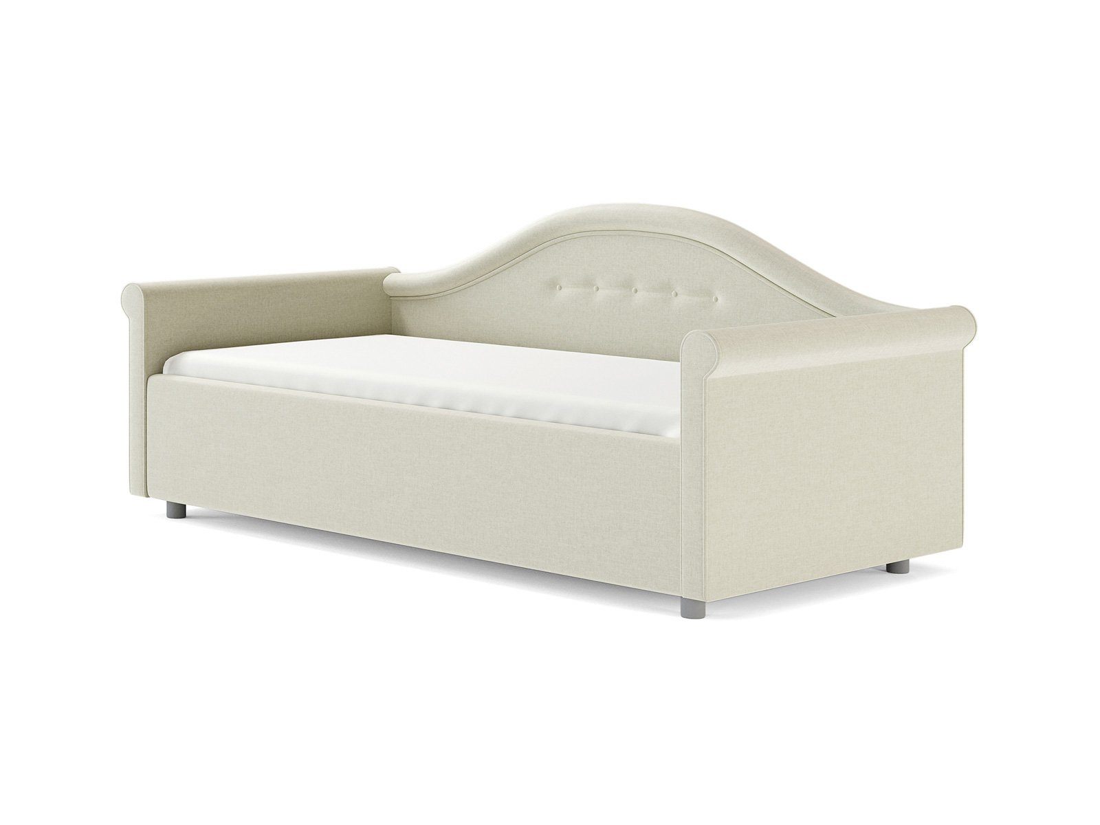 Кровать комплектуется металлическим основанием (без опор), которое имеет 13 рядов встроенных березовых ламелий на каждое спальное место, обеспечивая равномерное распределение нагрузки.