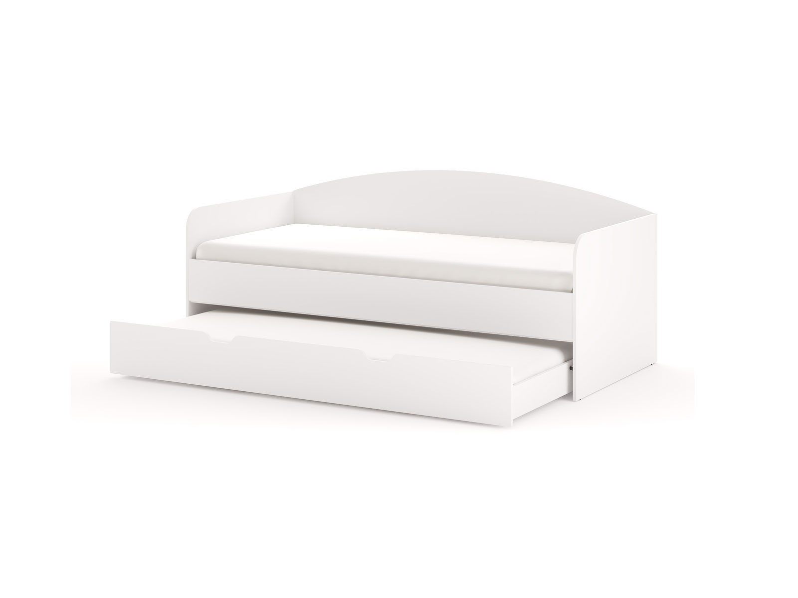 Кровать из ЛДСП с дополнительным выдвижным спальным местом. Выдвижная часть модели может использоваться в качестве дополнительного спального места или вместительного бельевого ящика. Модуль выдвигается с помощью роликов. Возможность полного выдвижения способствует легкой уборке под кроватью. Варианты исполнения: доступна в пяти цветах ЛДСП (белый, графитовый, ясень ориноко, ясмунд и ясень анкор)