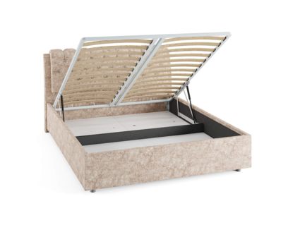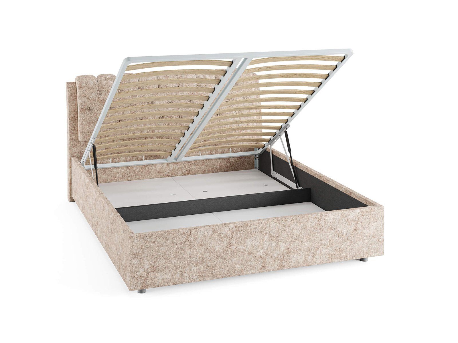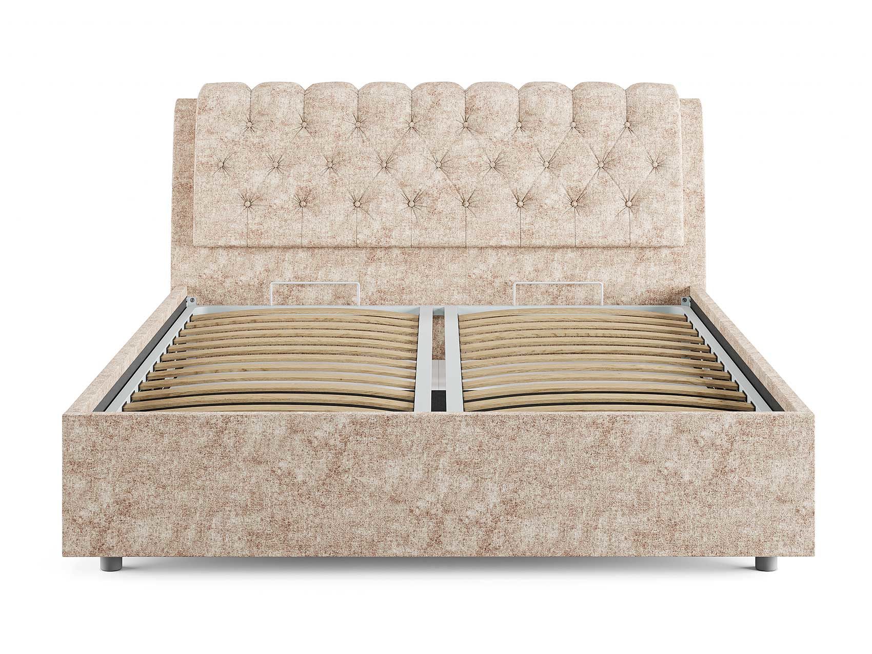 Кровать комплектуется металлическим основанием и подъемным механизмом со вместительным бельевым ящиком. Дно бельевого ящика легко сдвигается для обеспечения уборки под кроватью.