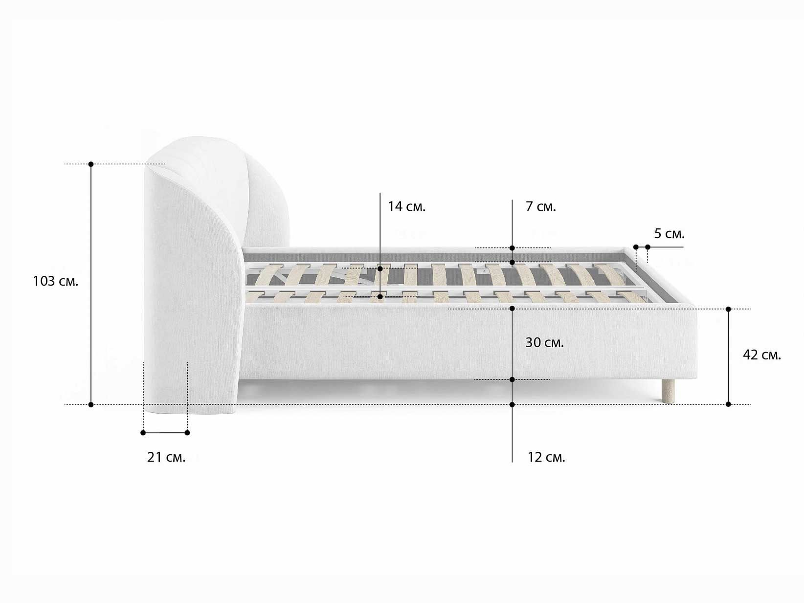 Допустимая высота матраса - 30 см.