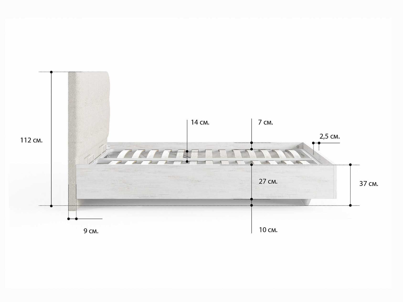 Царги из ЛДСП увеличенной толщины придадут строгость и надежность. Благодаря сочетанию усиленных металлических уголков (толщина металла 4 мм.), ребер жесткости и эксцентриковой стяжке конструктив кровати получается жёстким и прочным. Соединение элементов выполнено без использования саморезов, поэтому кровать можно собирать многократно без потери качества.