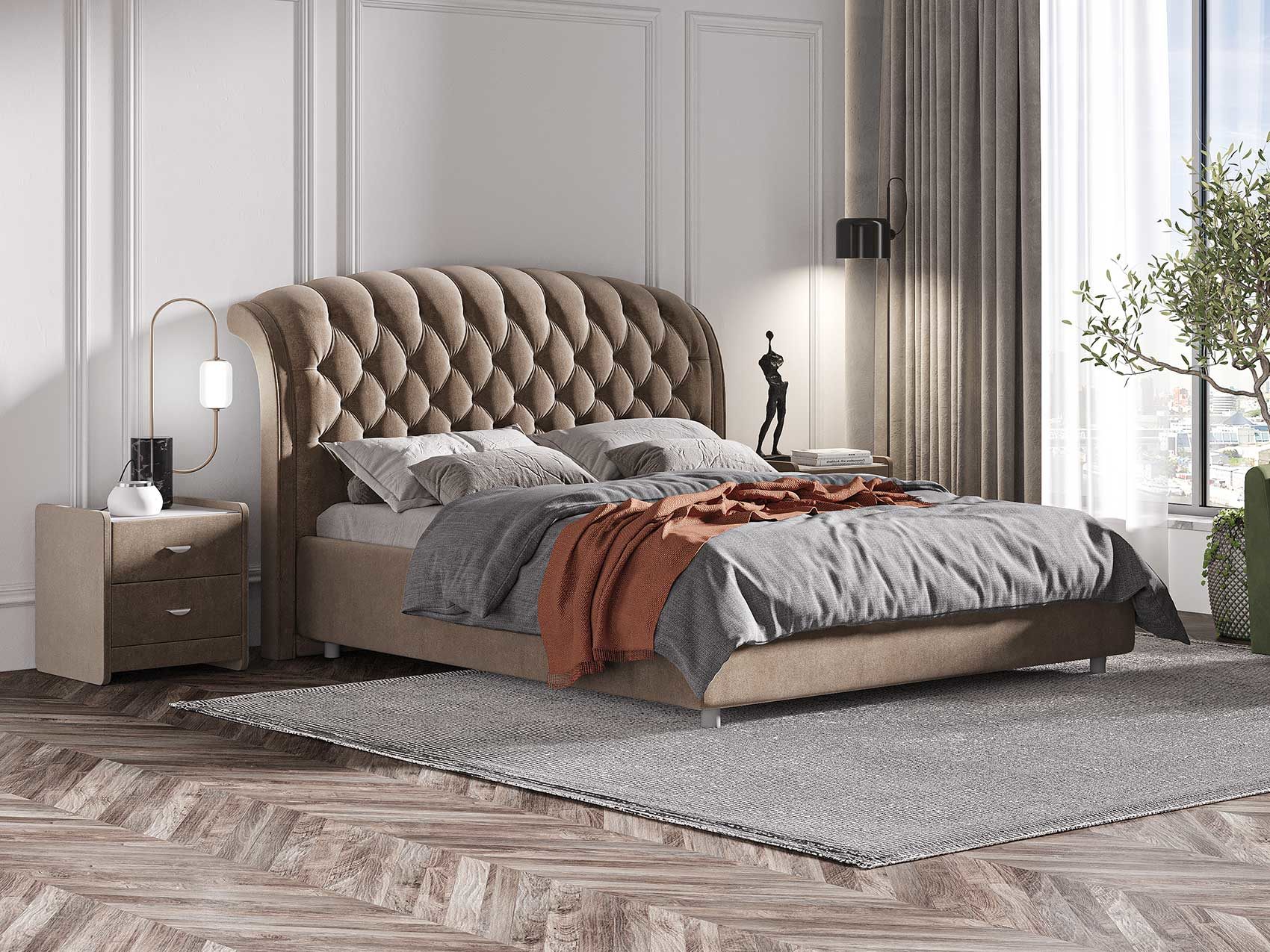 Кровать комплектуется металлическим основанием и подъемным механизмом со вместительным бельевым ящиком. Дно бельевого ящика легко сдвигается для обеспечения уборки под кроватью.