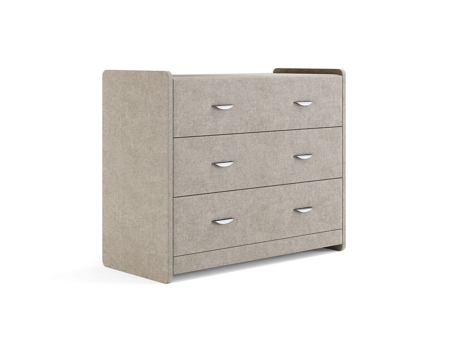 Современный и элегантный комод отличается повышенным удобством. Фасад ящиков и стенки комода покрыты обивочным материалом и выполняются в 43 вариантах цветового исполнения. Для удобства использования и продления срока эксплуатации, рекомендуется использовать стеклянную накладку. Накладка используется в качестве столешницы для тумбы и защищает ее от повреждений и загрязнений. Стеклянная столешница заказывается дополнительно.