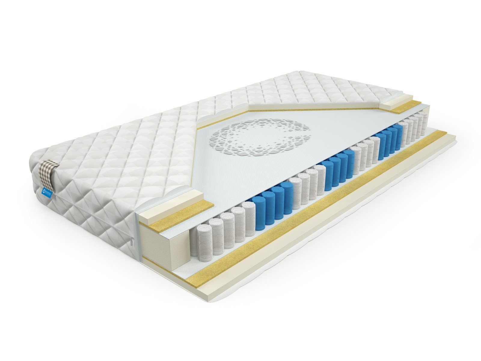 Матрас BioCrystal Cactus L - недорогой матрас средней жесткости с сизалем. Матрас c ортопедическим эффектом на основе семи-зонного пружинного долговечного блока независимых пружин SIlverSpringPocket 7 zone. Данный блок насчитывает 580 металлических пружин на одно спальное место, это оптимальное количество пружин для бюджетного матраса. 7 зональный пружинный блок SSP 580 значительно прочнее обычного блока независимых пружин, и имеет большее количество витков, что, в свою очередь, лучше сказывается на упругости матраса и качестве сна. Матрас насчитывает семь зон жесткости и правильно повторяет изгибы позвоночника во время сна или отдыха. С каждой стороны матраса расположен латексированный сизаль по 1 сантиметру и по 3 сантиметра пенополиуретана. Сизаль - это натуральный материал на основе растения Агавы, пропитанное латексом. Очень жесткий, экологически чистый, влагоустойчивый материал.