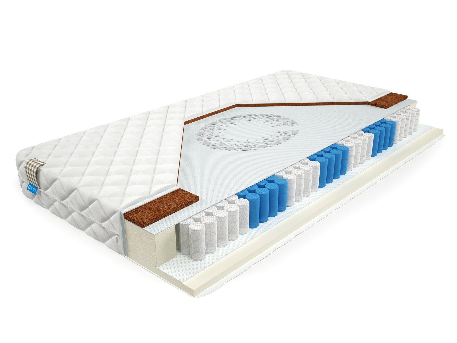 Матрас BioCrystal Robert L классический двухсторонний матрас. Матрас c ортопедическим эффектом на основе семи-зонного пружинного долговечного блока независимых пружин SIlverSpringPocket 7 zone. Данный блок насчитывает 580 металлических пружин на одно спальное место, это оптимальное количество пружин для бюджетного матраса. 7 зональный пружинный блок SSP 580 значительно прочнее обычного блока независимых пружин, и имеет большее количество витков, что, в свою очередь, лучше сказывается на упругости матраса и качестве сна. Матрас насчитывает семь зон жесткости и правильно повторяет изгибы позвоночника во время сна или отдыха. Жесткость матраса придают& 2 сантиметра латексированного кокосового волокна c 1 стороны, это сторона матраса будет немного жестче. А с другой стороны матраса 2 см пенополиуретана. ППУ – это современный материал, очень часто его называют искусственный латекс, так как по своим характеристикам, он анатомичный и не жесткий материал. Пенополиуретан усиливает анатомический эффект матраса. Это оптимальный выбор для тех, кто до конца не определился с жесткостью матраса.