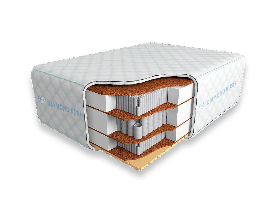 Если мост через реку будет иметь ширину, соответствующую одной дощечке, то, согласитесь, пройти по нему и не вымокнуть достаточно сложно. Мало того, одна дощечка не всегда способна выдержать вес проходящего, другими словами оказывать должную поддержку. А вот ширину, укомплектованную тремя дощечками, можно смело считать надежной, крепкой и износоустойчивой. Также, как и матрас Cocos-2 Ergo 50sm+ от компании Diamond Rush, состоящий из трех пружинных блоков. Он способен выдержать значительные нагрузки, долго служить своему владельцу и при этом поддерживать спящего самым ортопедическим образом.