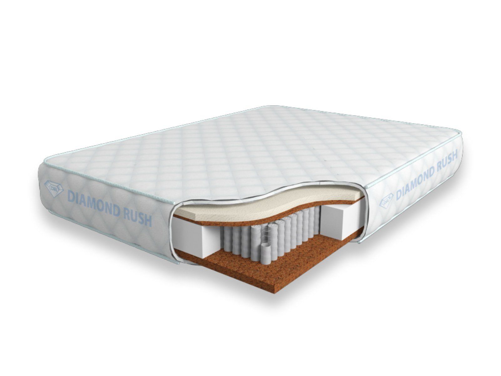 Матрас Diamond Rush Cocos Ergo 1440SD имеет в своей основе независимый пружинный блок 1440, состоящий из пружин диаметром 3-4 см. В качестве настилочных слоев поверх пружинного блока используются износостойкий искусственный латекс и латексированная кокосовая койра. Матрас относится к разносторонним, так как с одной стороны имеет среднюю жесткость, а с другой является жестким.