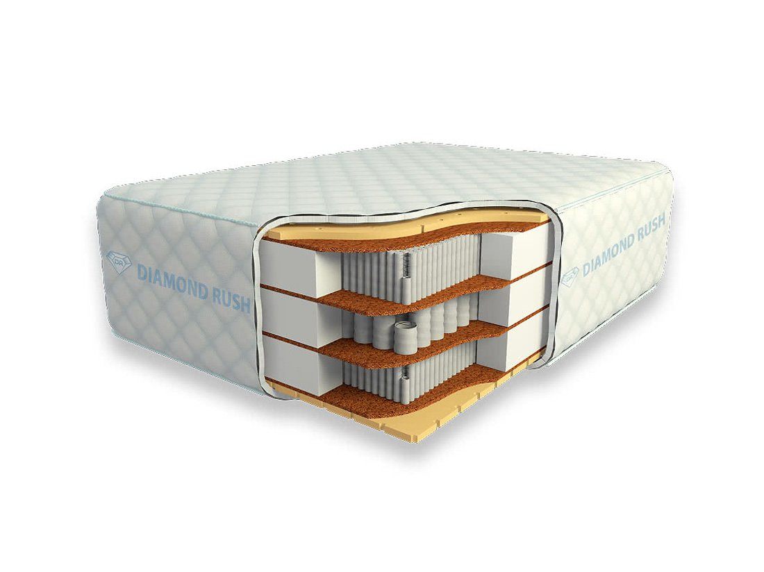 Матрас Comfy-2 40sm+ компанией Diamond Rush имеет классическое сочетание наполнителей и инновационные пружинные механизмы в своем составе. Производителем было помещено целых три блока независимых пружин в данное изделие, чтобы спящий имел возможность чувствовать себя будто в невесомости. Расслабляться в полной мере, но при этом сохраняя естественные изгибы позвоночника и должную поддержку всего опорно-двигательного аппарата.