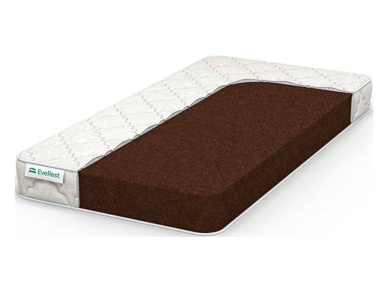 Беспружинный матрас EveRest кокос относится к разновидности самых жёстких изделий. Кроме большой твёрдости модель выделяет компактный размер – её высота оставляет 16 см. При это спальная принадлежность практично выдерживает вес до 120 кг на спальное место.