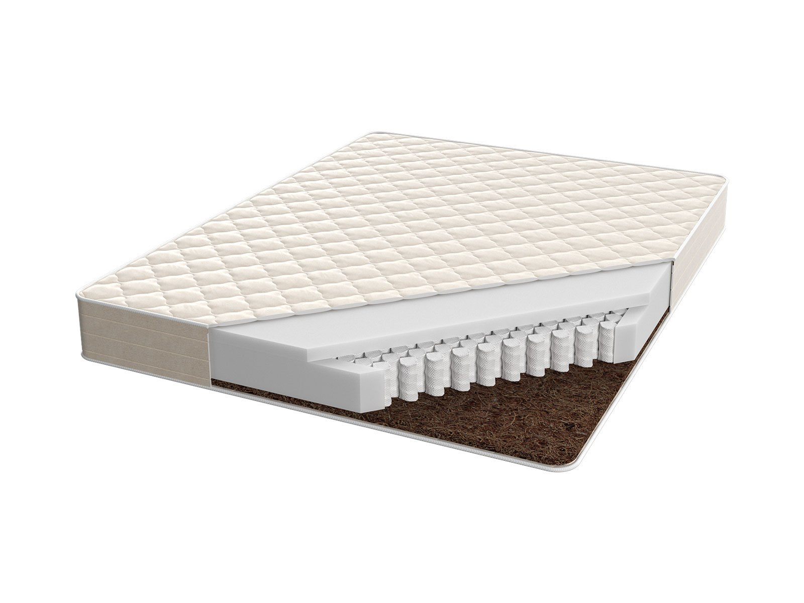 Наполнитель в виде натурального кокосового волокна позволит создать идеальные условия для крепкого и здорового сна. Ортопедическая пена, установленная у противоположной стороны, смягчает поверхность и делает её анатомичной.