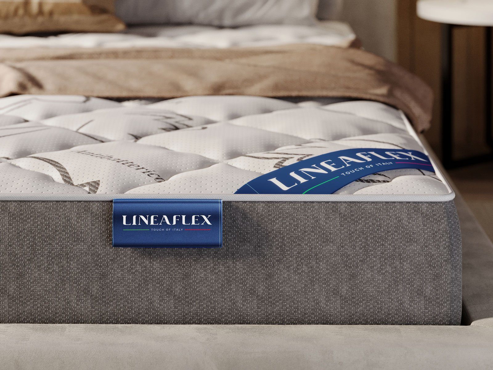 Модель получила красивый чехол Antibatterico Lux, обладающим бактерицидными свойствами благодаря присутствию натурального бамбукового волокна. Итальянский трикотаж бережно простёгивается по холлофайберу и объёмной пене. В результате обивка обретает мягкие и объёмный рельеф.