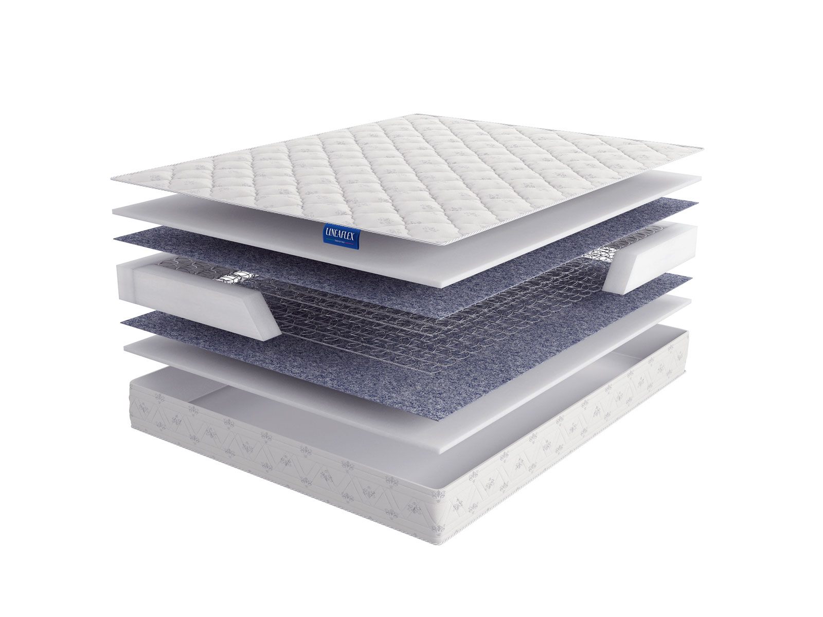 В центр изделия поставлен пружинный блок «Боннель», который относится к числу зависимых систем. Это значит, что при нагрузке на полотно будет вовлекаться вся площадь матраса. Данная особенность позволяет переносить вес до 90 кг на спальное место.