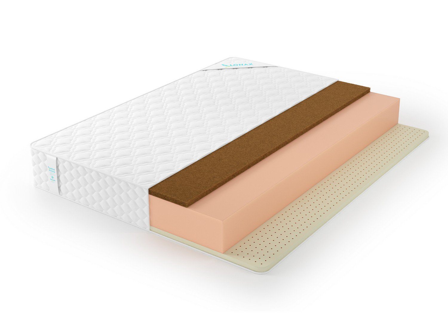 Высокий матрас Lonax Foam Latex Cocos 3 Max создан на беспружинном основании. Изделие производится отечественным брендом Lonax – признанным лидером рынка сна. Матрас отличает наличие натуральных слоёв в составе, а также контрастная жёсткость сторон – умеренно-мягкая и высокая.